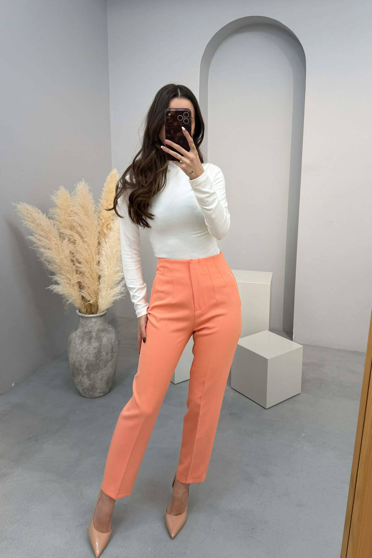 PANTALLONA KLASIKE TE THJESHTA NJE NGJYRESHE PER FEMRA NE NGJYRE SALMON