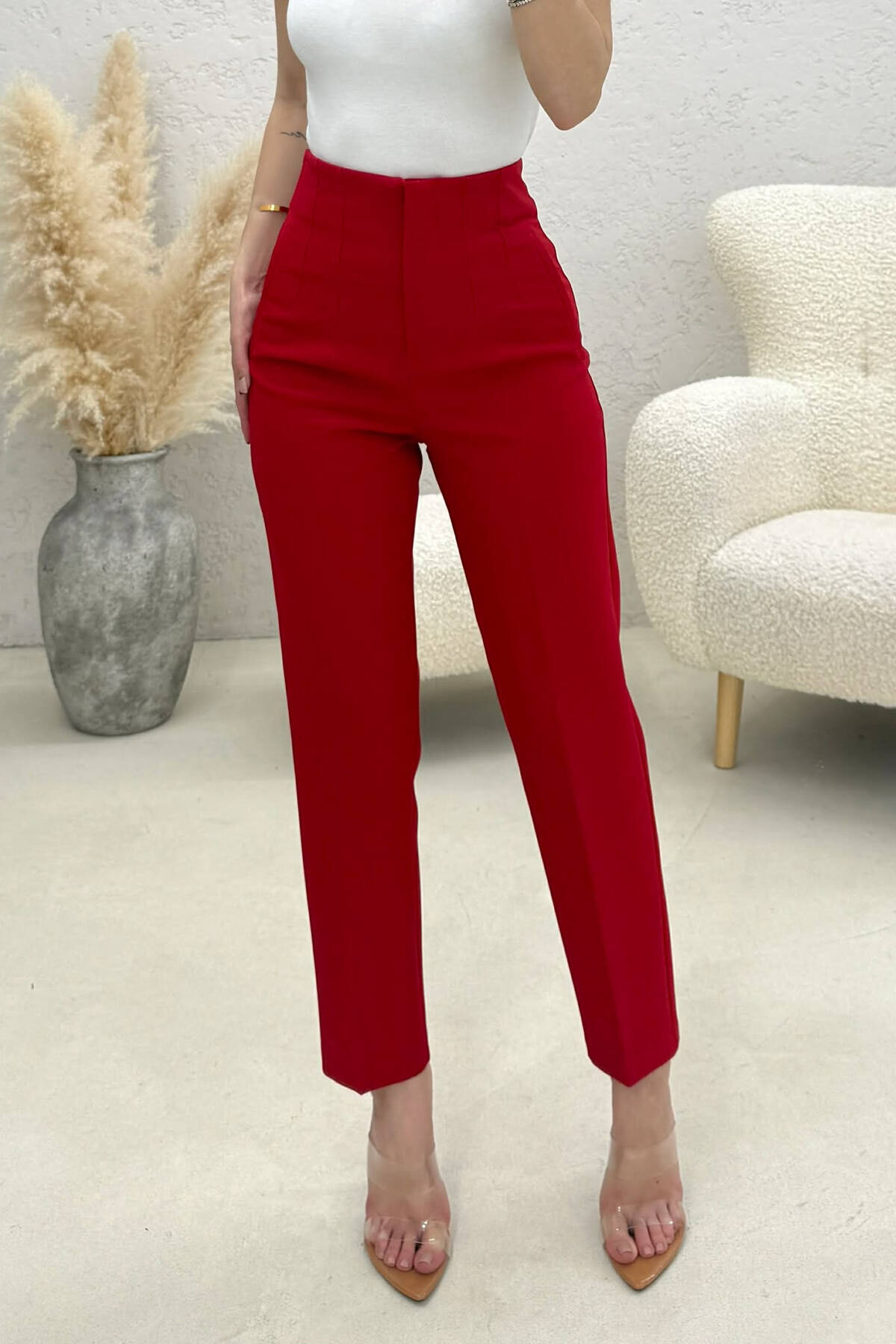PANTALLONA KLASIKE TE THJESHTA NJE NGJYRESHE PER FEMRA NE NGJYRE TE KUQE