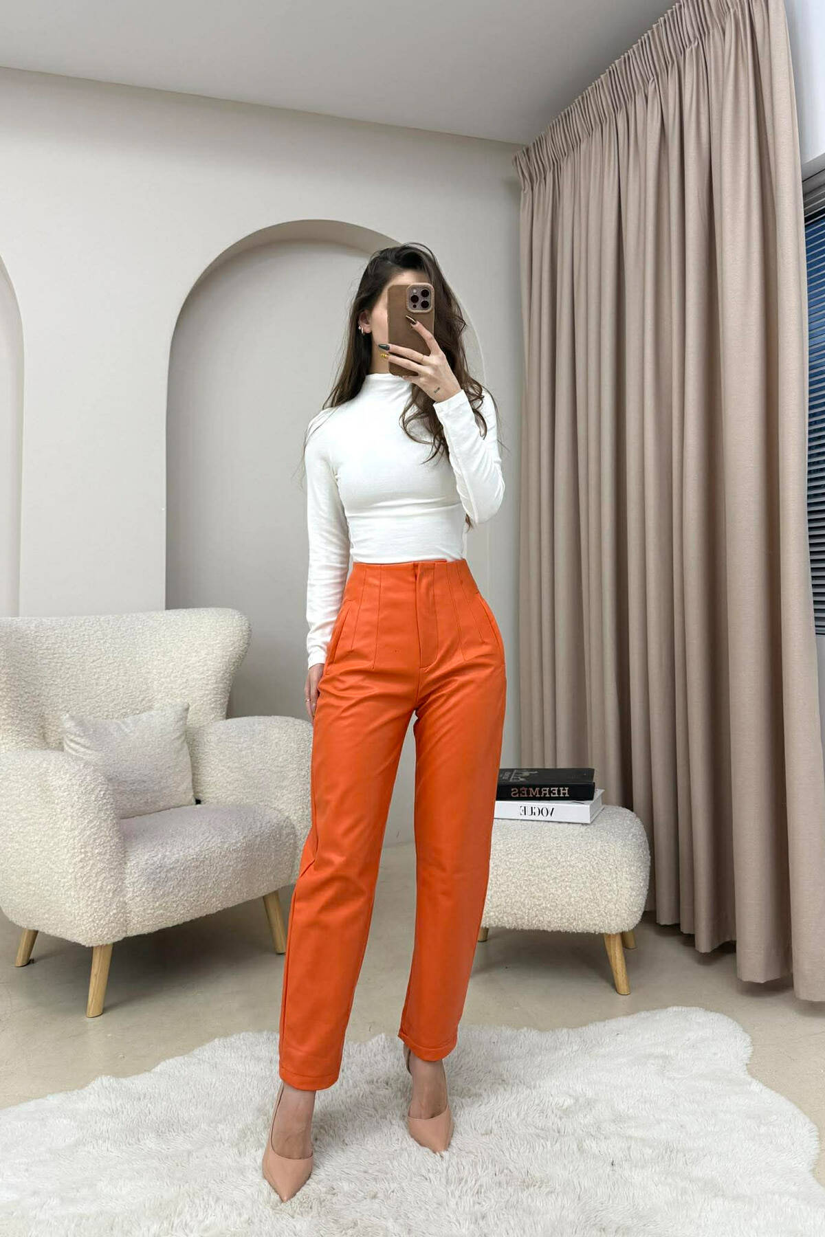 PANTALLONA LEKURE TE THJESHTA NJE NGJYRESHE PER FEMRA NE NGJYRE PORTOKALLI