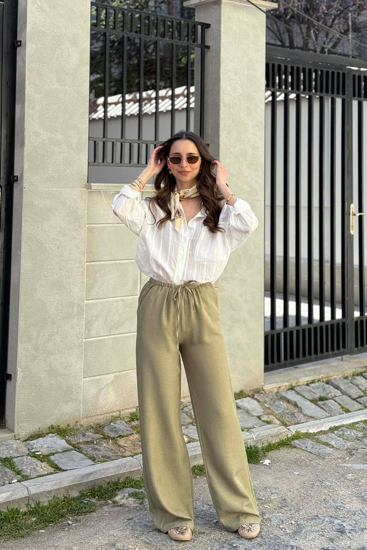 PANTALLONA ME BEL ELASTIK DHE ME DETAJIN E LIDHSEVE PER FEMRA NE NGJYRE TE ZEZE
