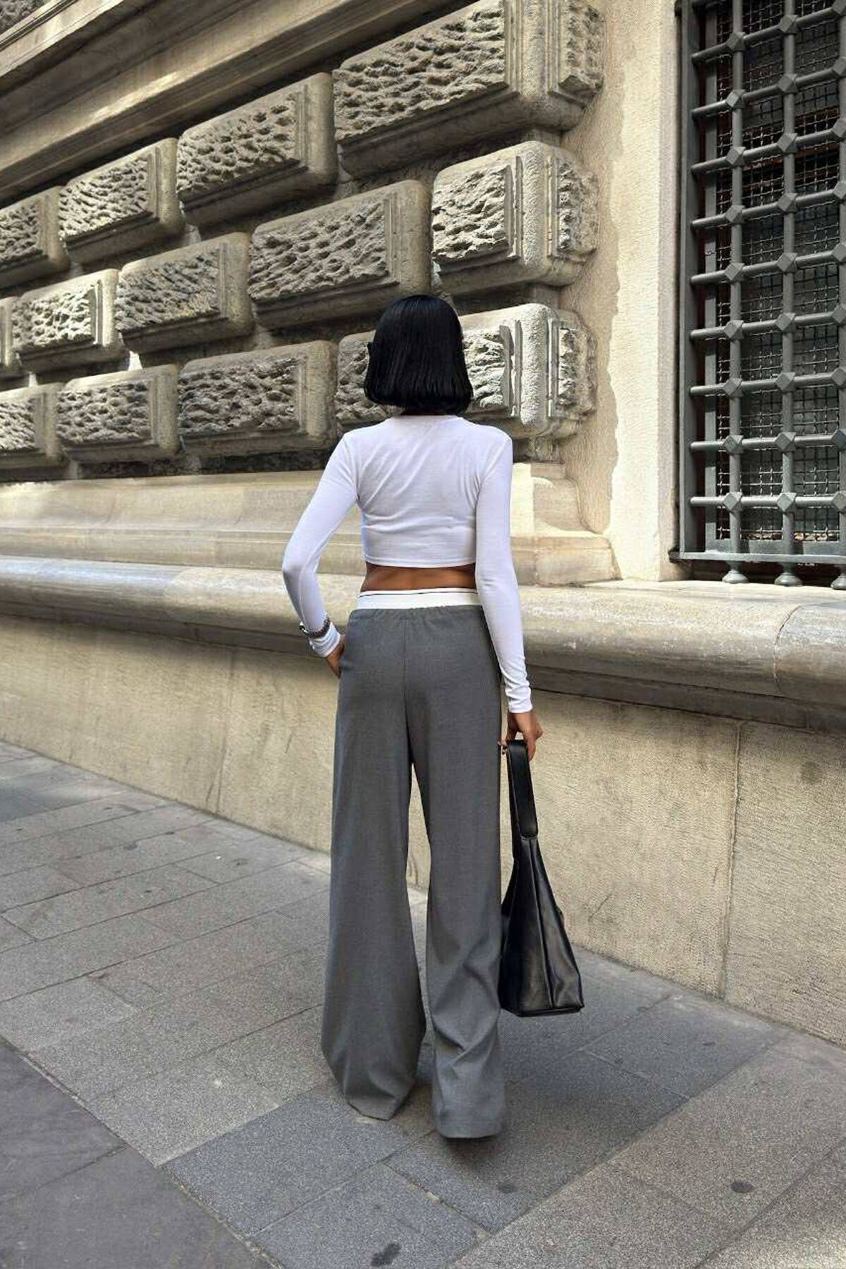 PANTALLONA ME BEL ELASTIK DHE ME DETAJIN E LIDHSEVE PER FEMRA NE NGJYRE GRI GRI