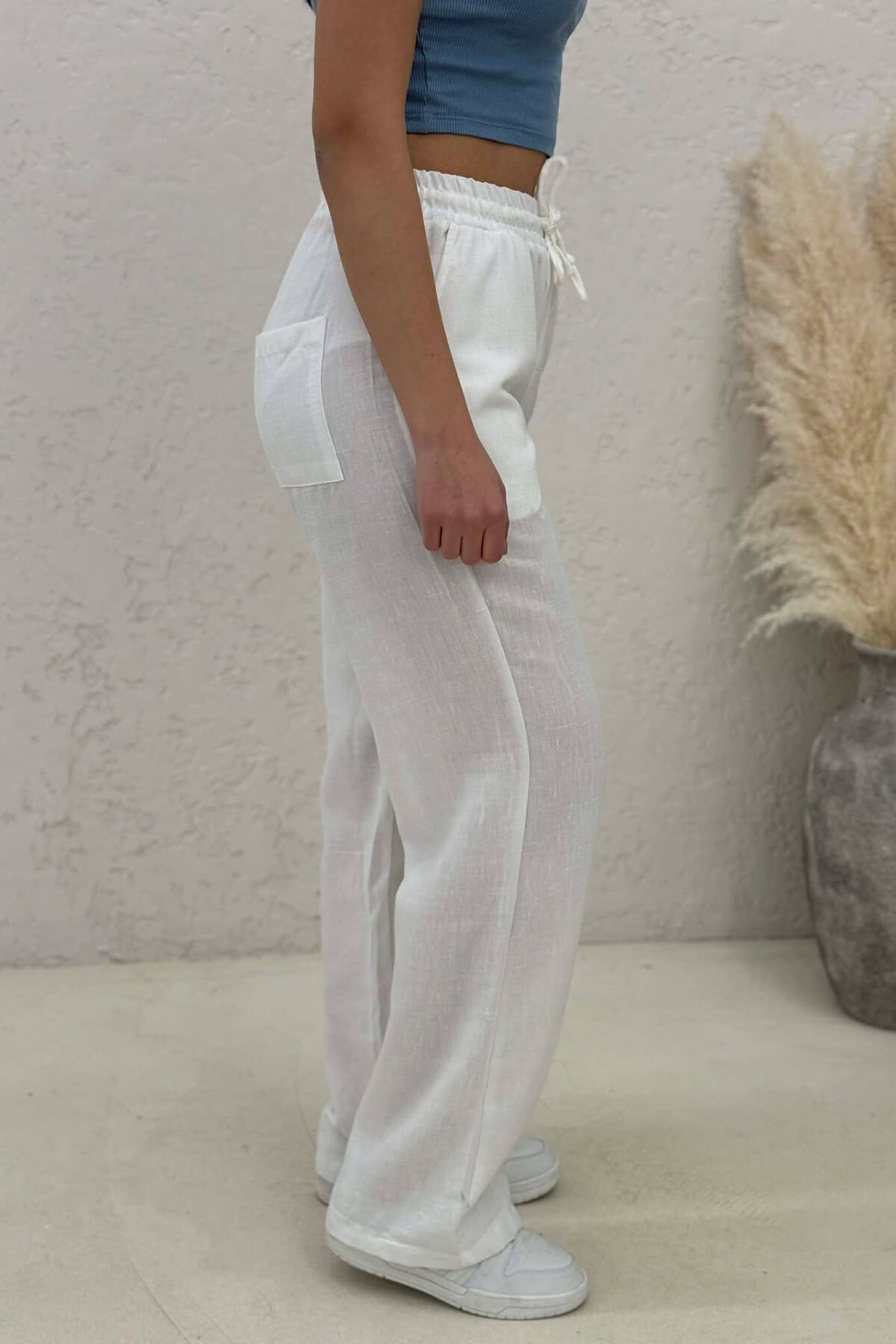 PANTALLONA ME BEL ELASTIK PER FEMRA NE NGJYRE TE BARDHE