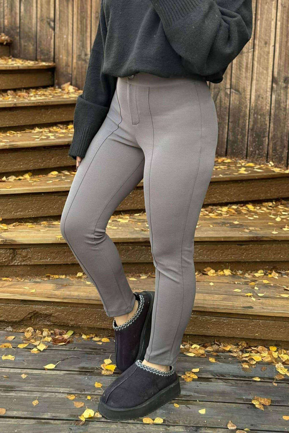 PANTALLONA ME BEL ELASTIK DHE ME DETAJIN E LIDHSEVE PER FEMRA NE NGJYRE GRI GRI
