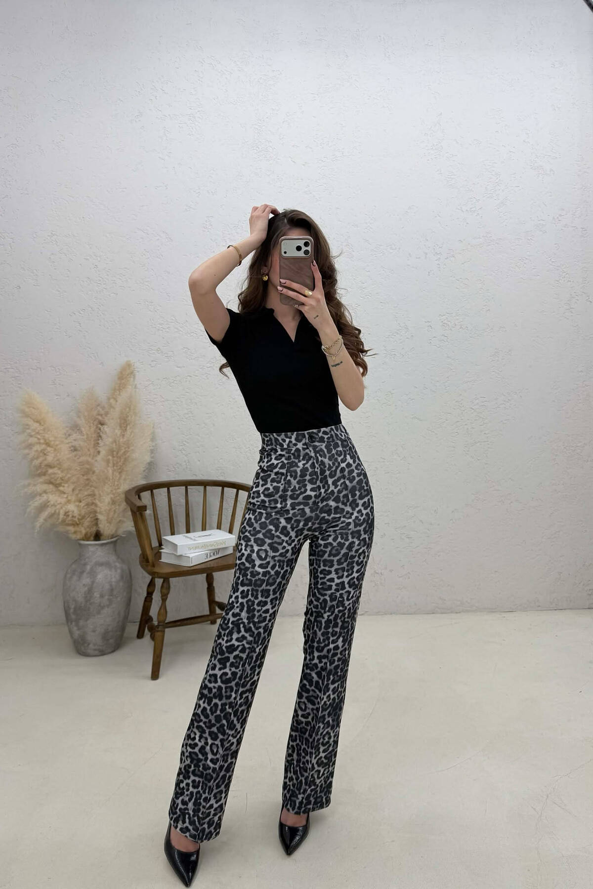 PANTALLONA ME BEL GJYSEM ELASTIK ME DIZAJN LEOPARD PER FEMRA NE NGJYRE GRI TE ERRET