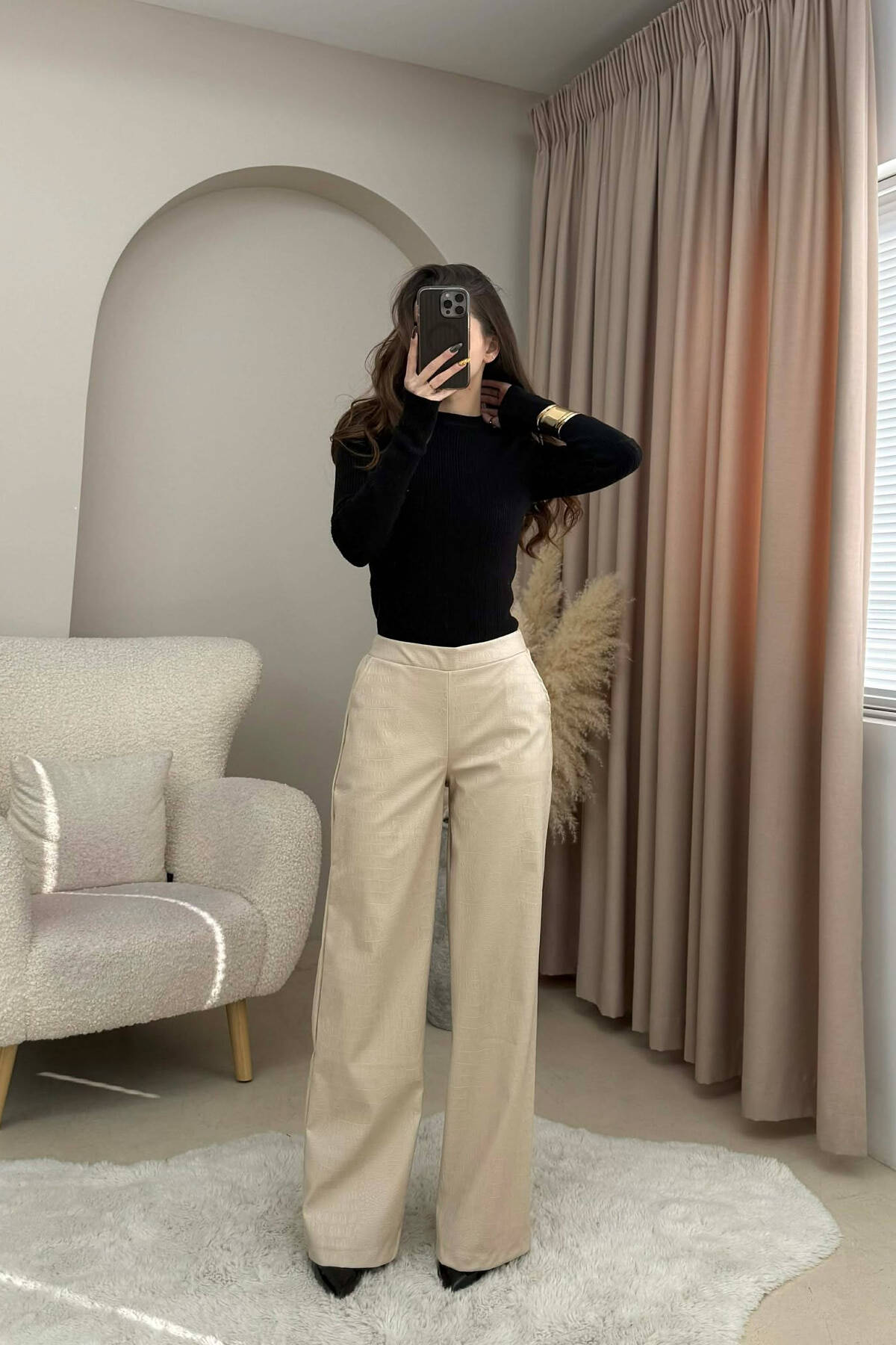 PANTALLONA LEKURE ME BEL GJYSEM ELASTIK PER FEMRA NE NGJYRE KREM