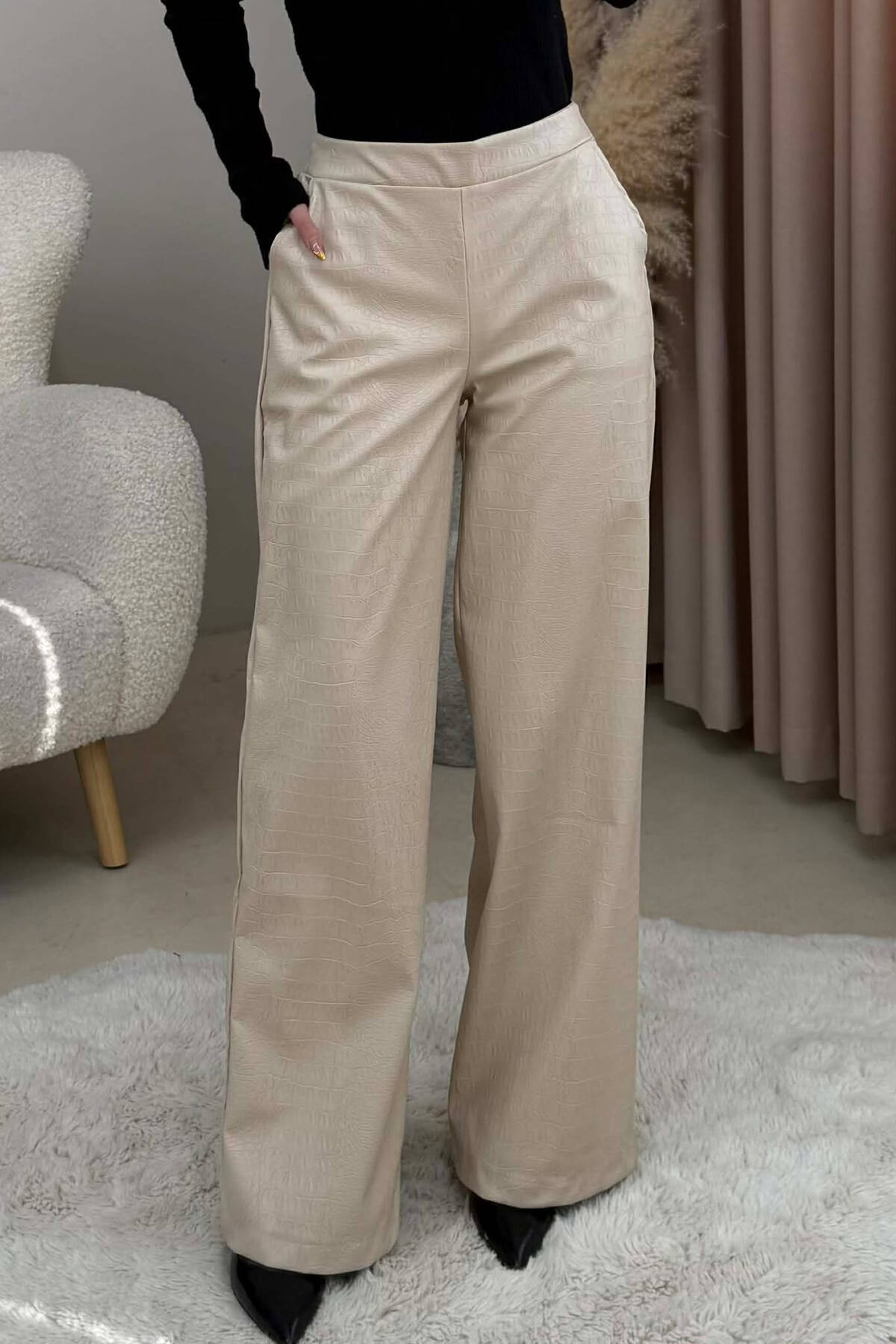 PANTALLONA ME DETAJIN E RRIPIT PER FEMRA NE NGJYRE BEZHE