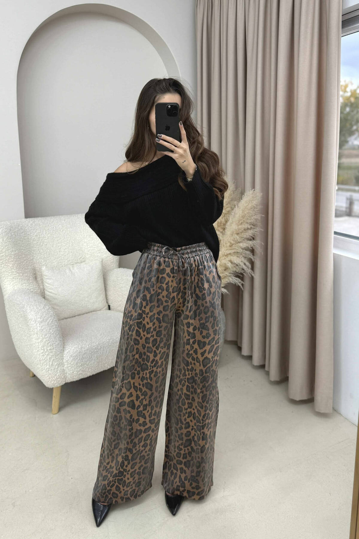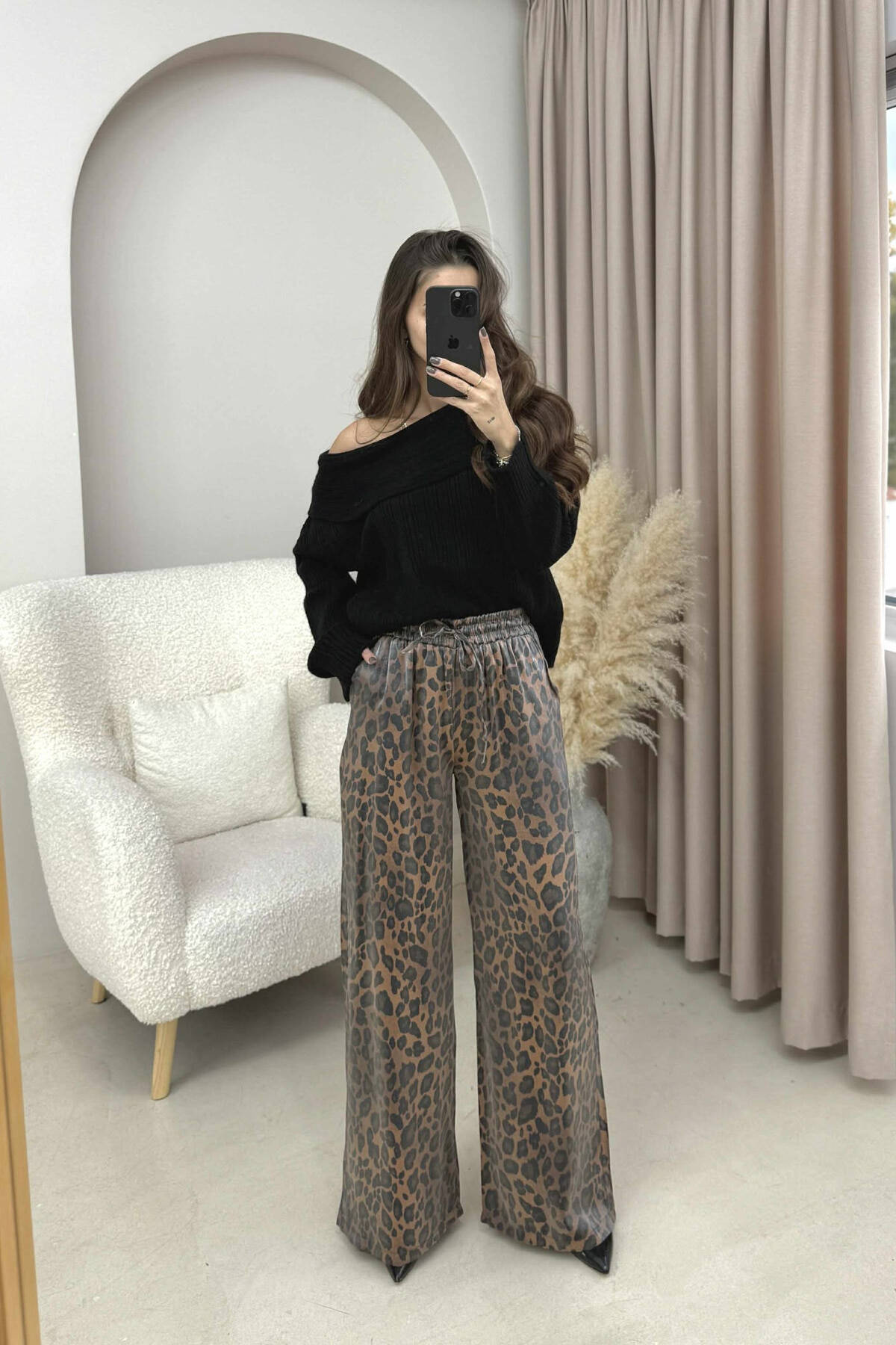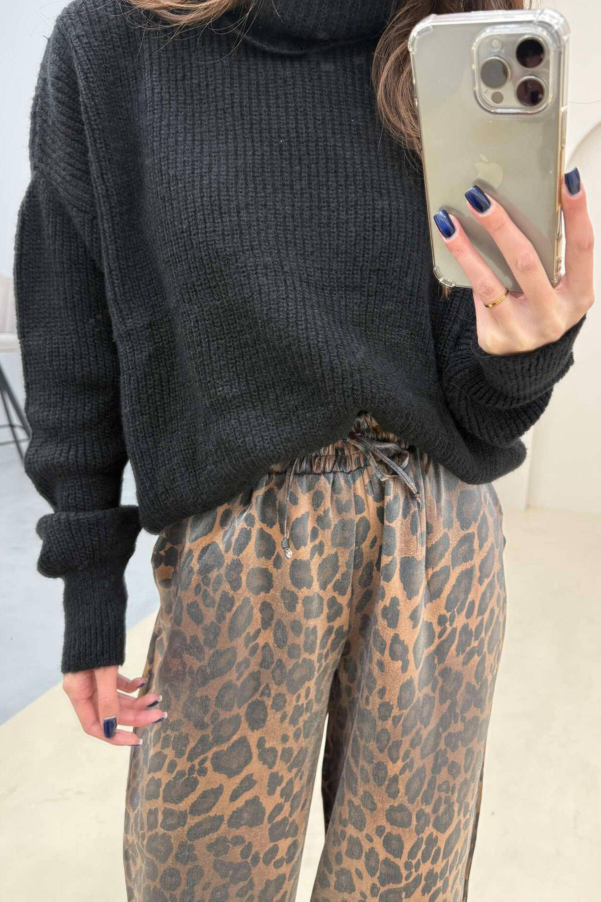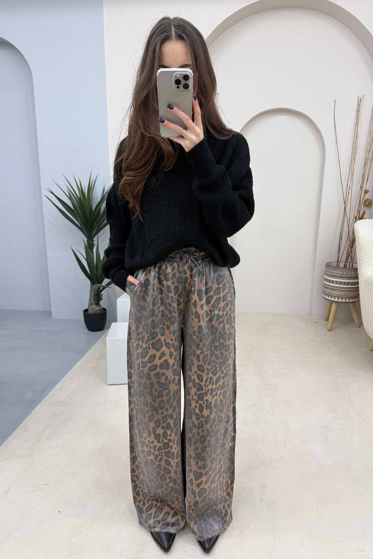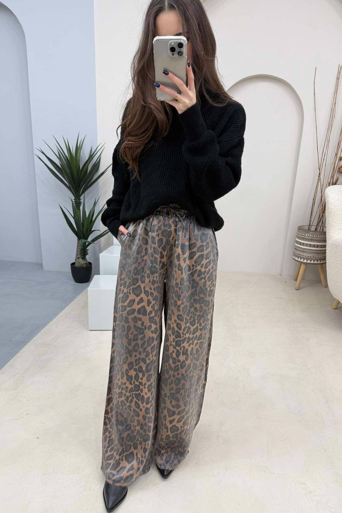 PANTALLONA ME DIZAJN LEOPARDI DHE ELASTIKE TE BELI PËR FEMRA