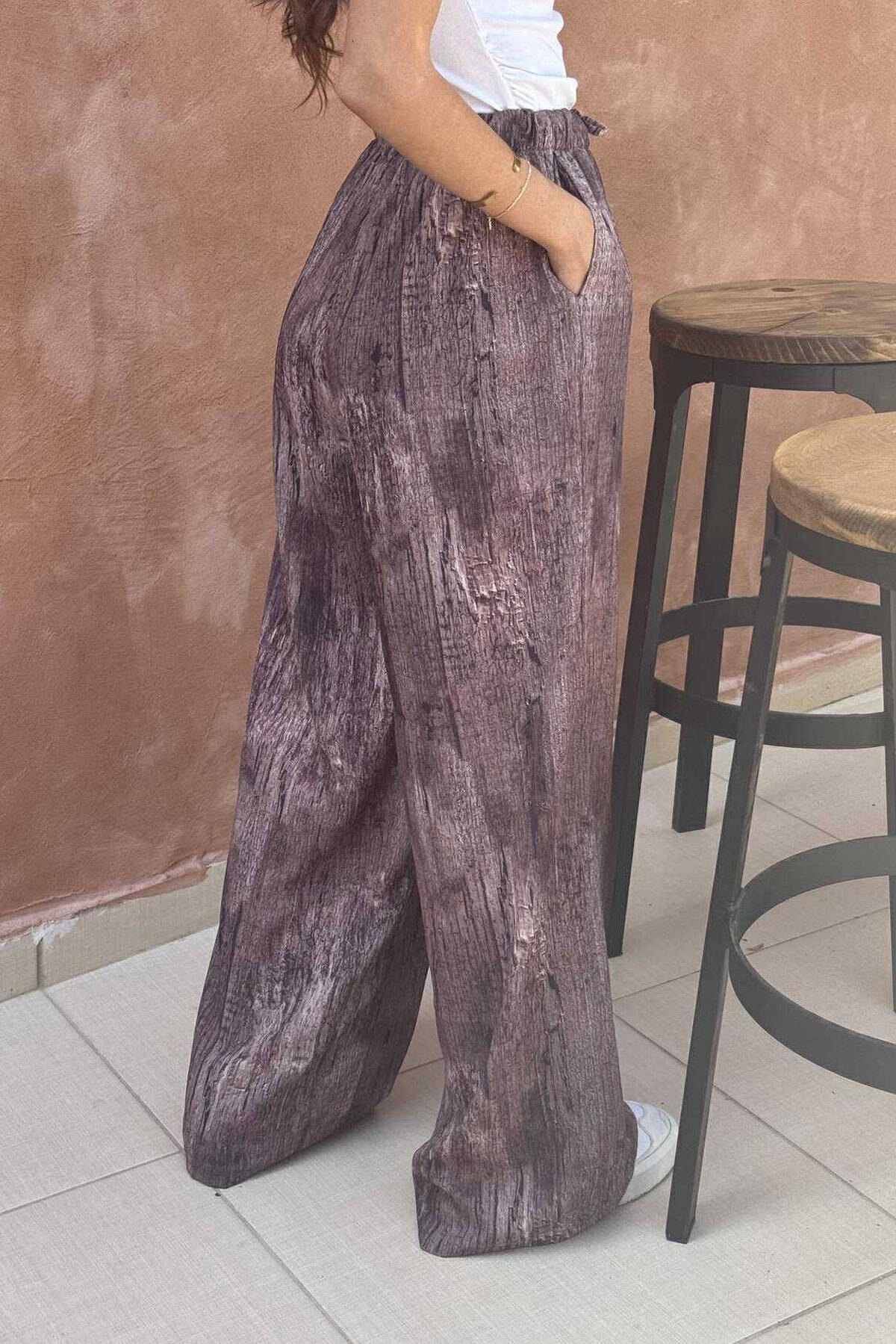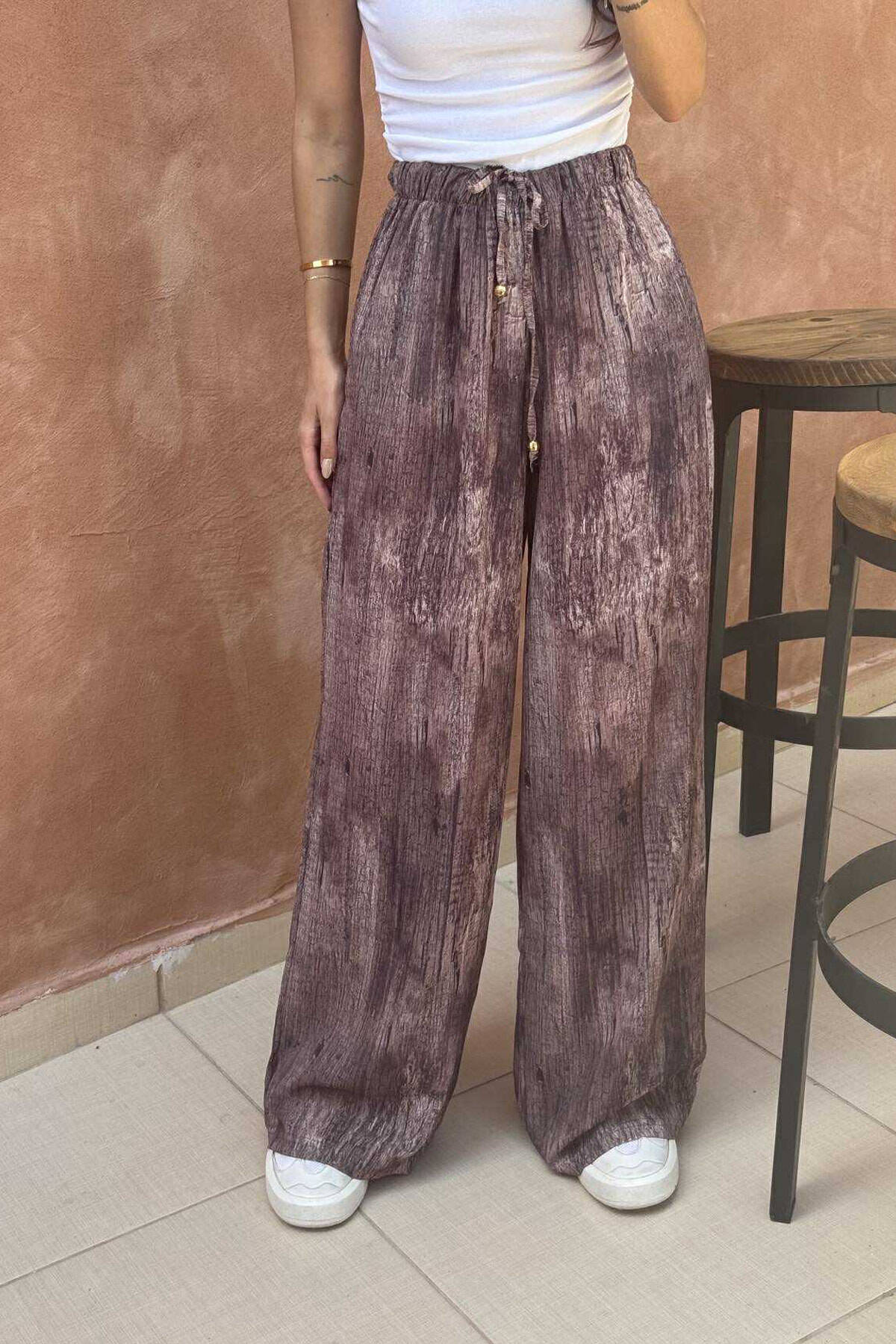 PANTALLONA ME DIZANJ ELASTIKE NË BELI DHE ME LIDHËSE PËR FEMRA NË NGJYRËN KAFE