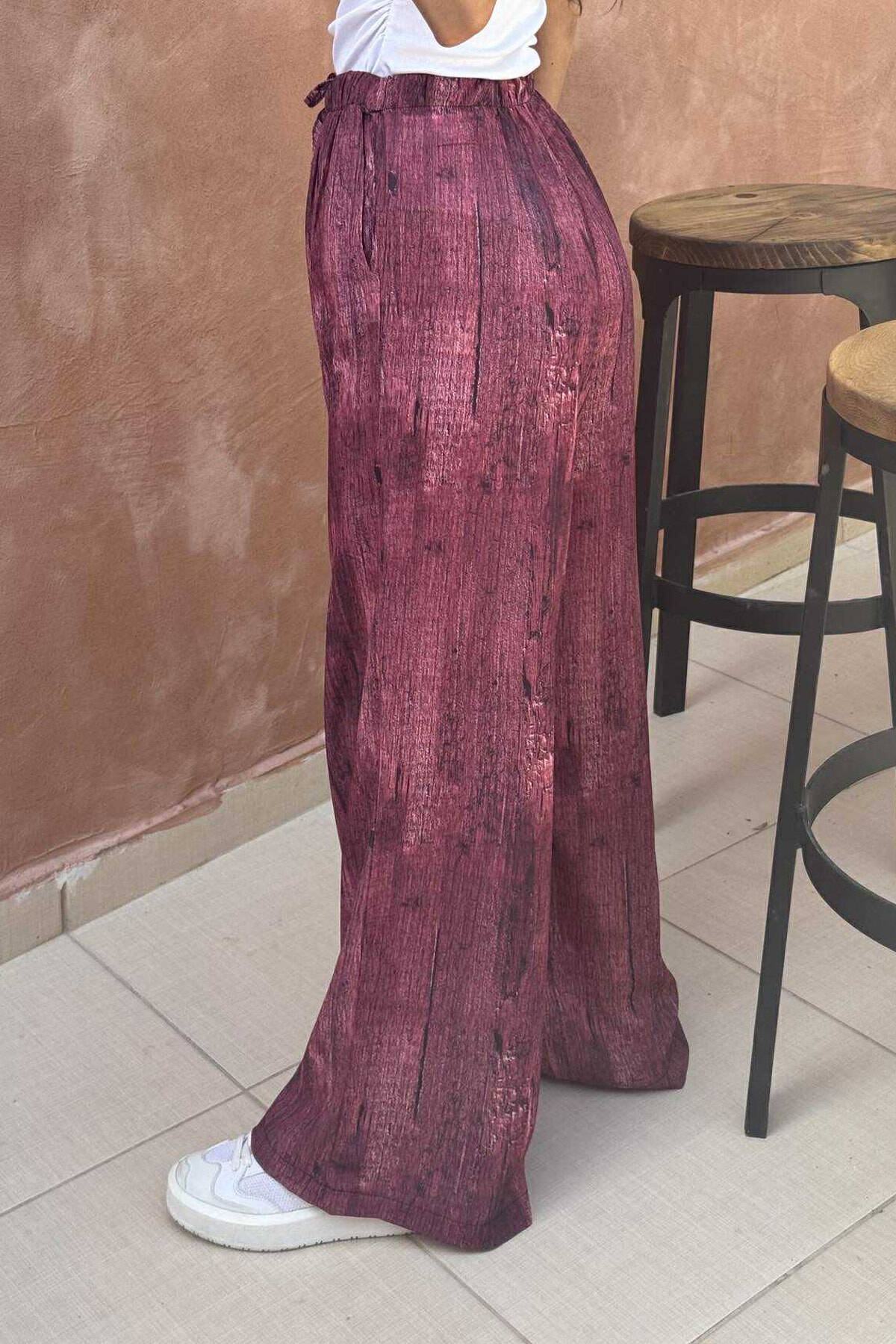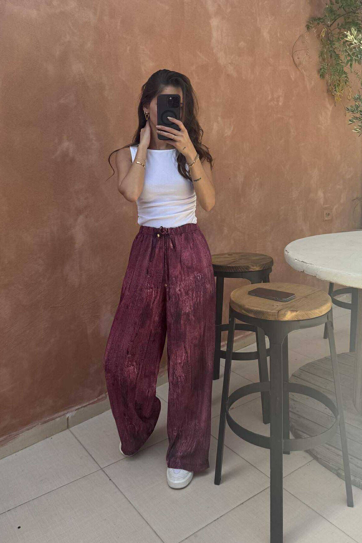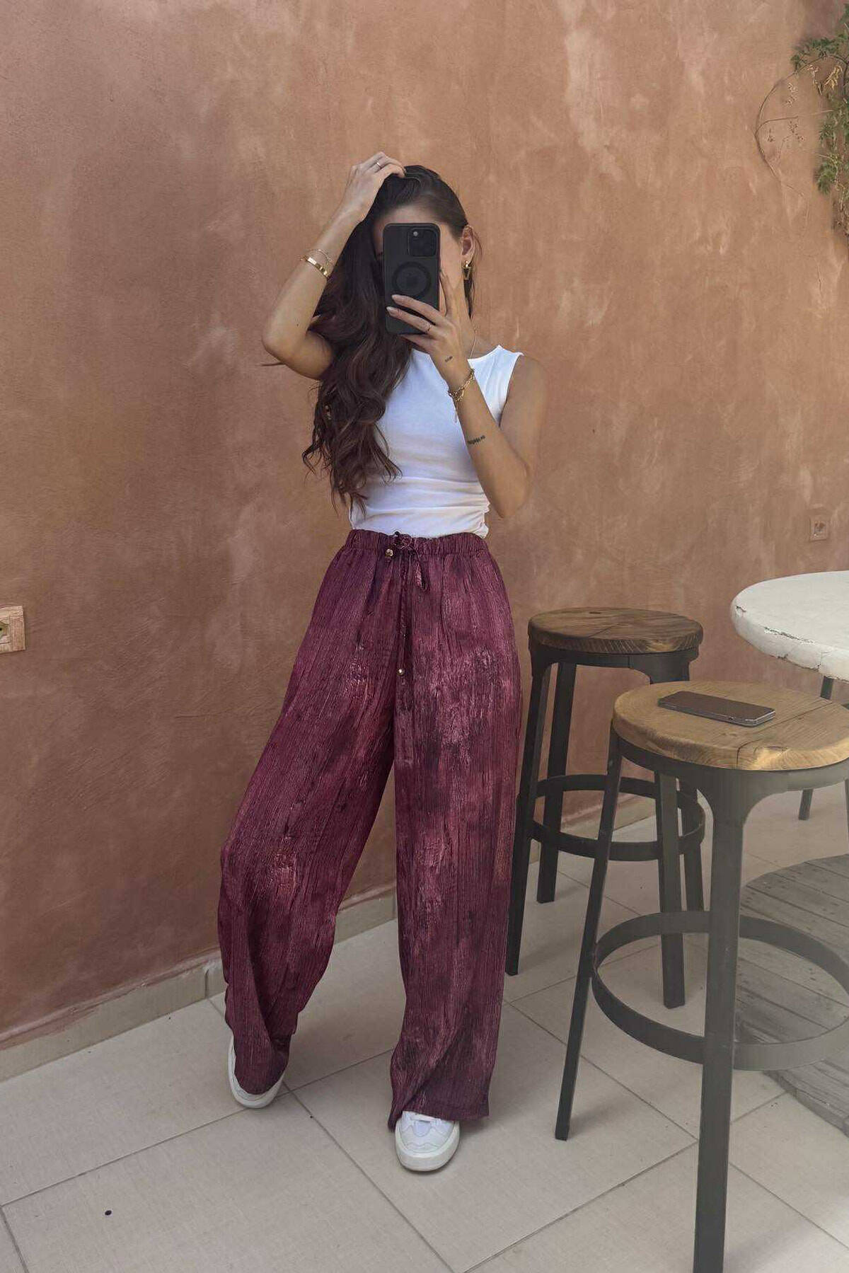 PANTALLONA ME DIZANJ ELASTIKE NË BELI DHE ME LIDHËSE PËR FEMRA NË NGJYRËN VISHNJË