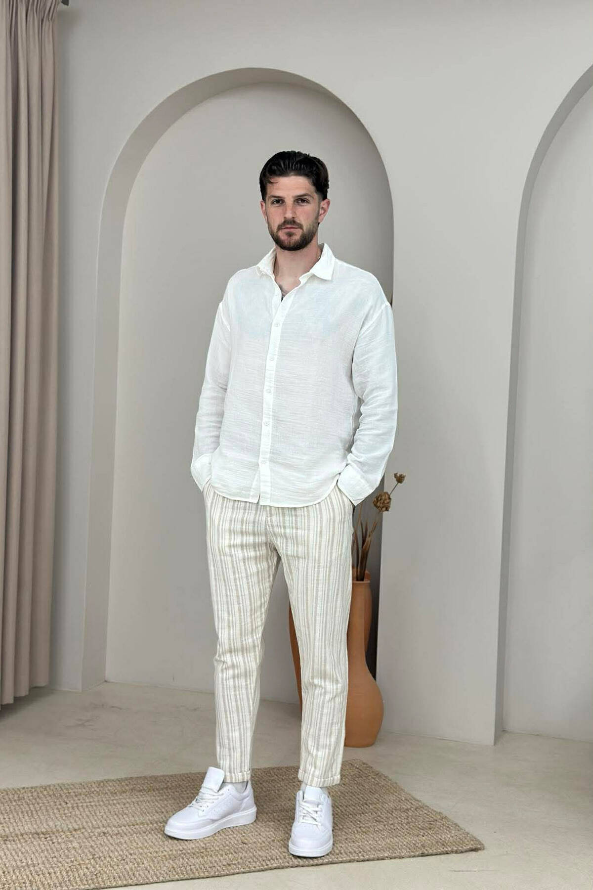PANTALLONA ME RRIP PER MESHKUJ NE NGJYRE KREM