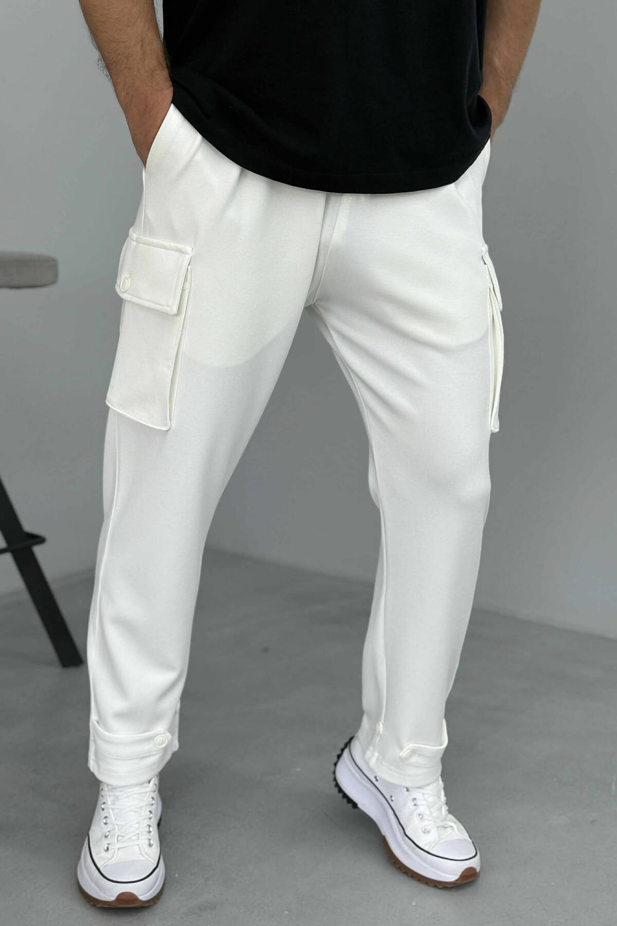 PANTALLONA ME LIDHSE ME DETAJIN E XHEPAVE PËR MESHKUJ NË NGJYRËN E BARDHË