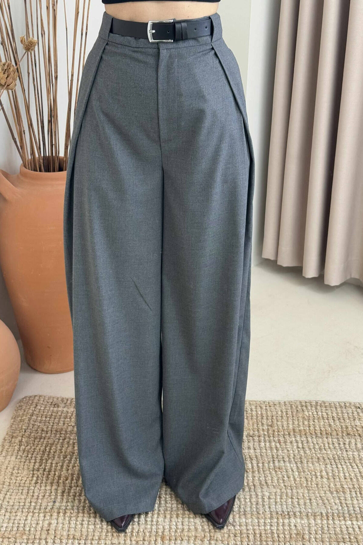 PANTALLONA ME BEL ELASTIK DHE ME DETAJIN E LIDHSEVE PER FEMRA NE NGJYRE GRI GRI