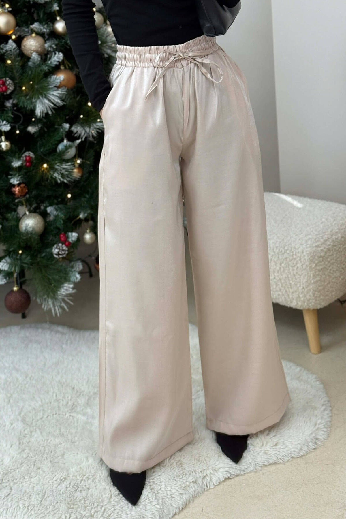 PANATLLONA ME SHKËLQIM ME LIDHËSE DHE BEL ELASTIK PËR FEMRA NË NGJYRË BEZHË