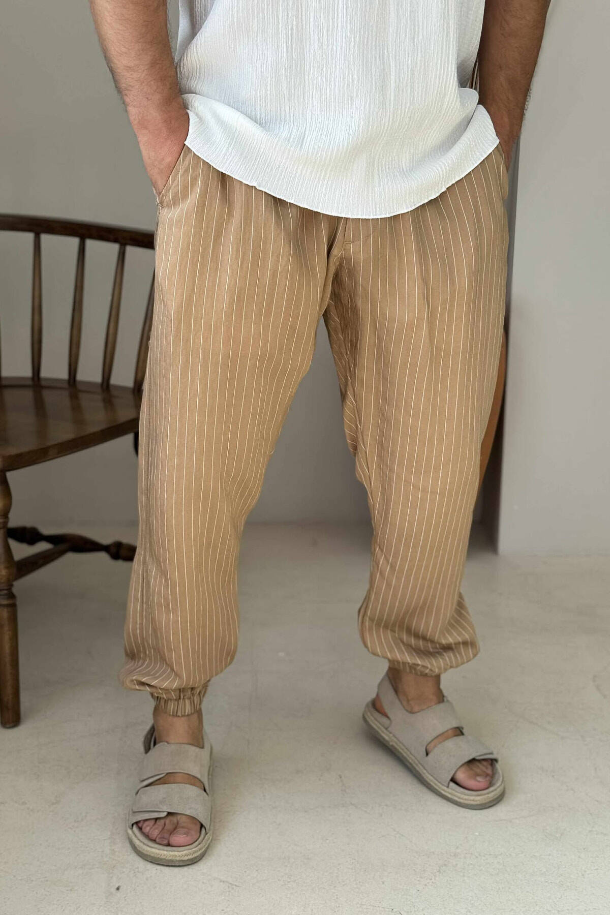 ONE COLOR SIMPLE STRIPES MEN PANTS BROWN/KAFE