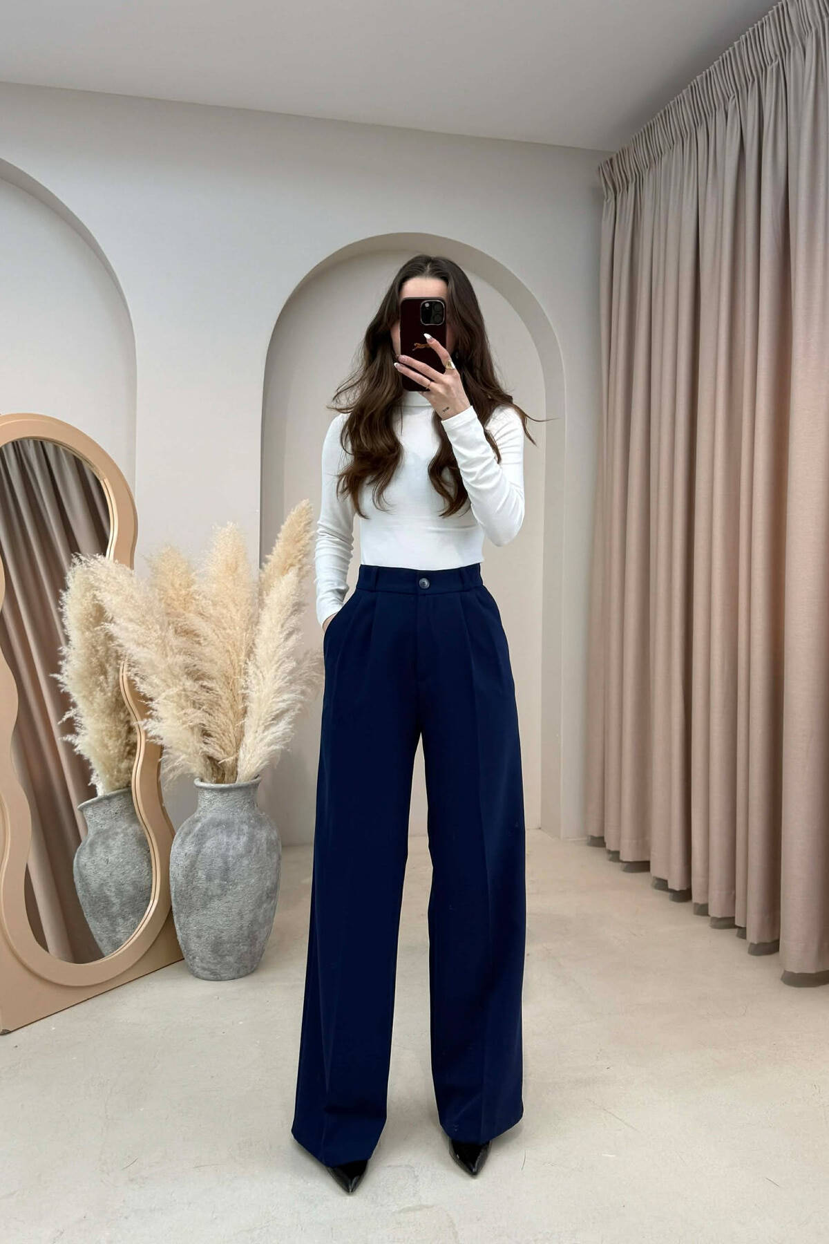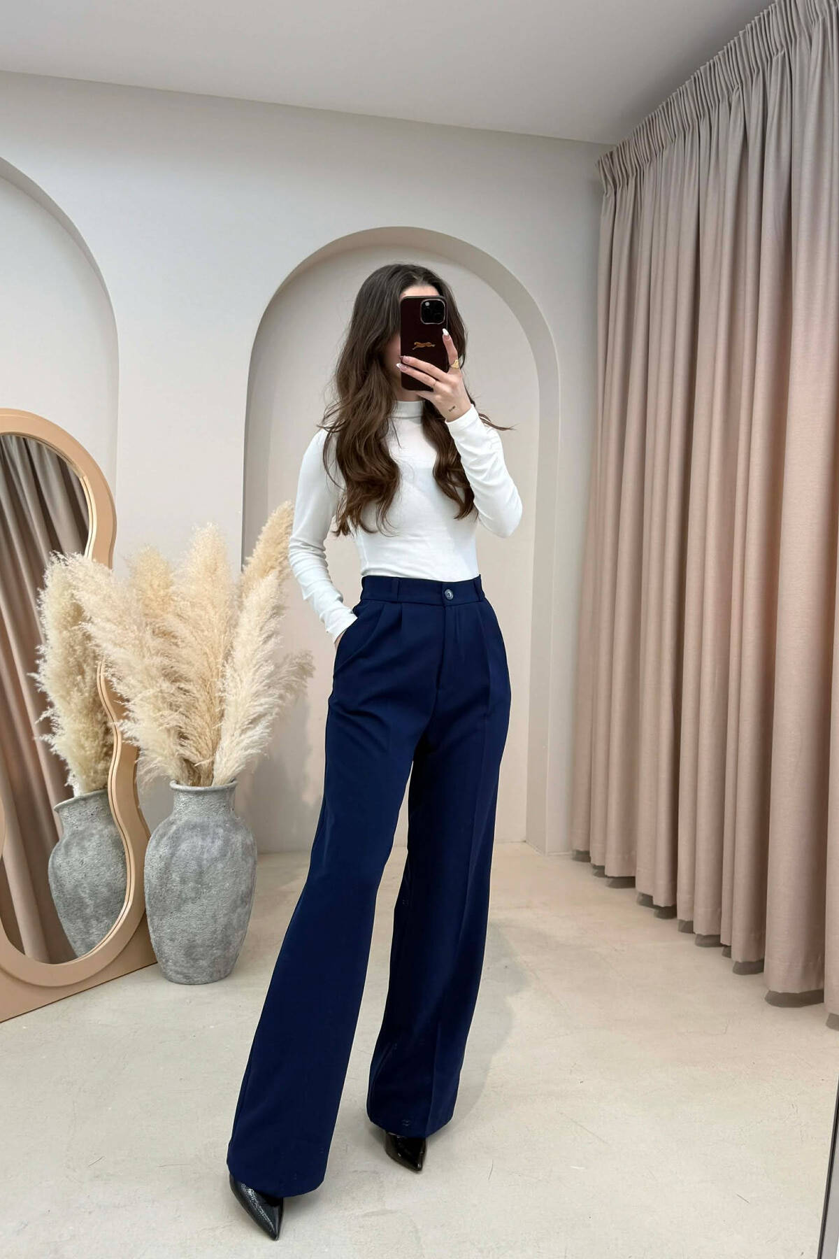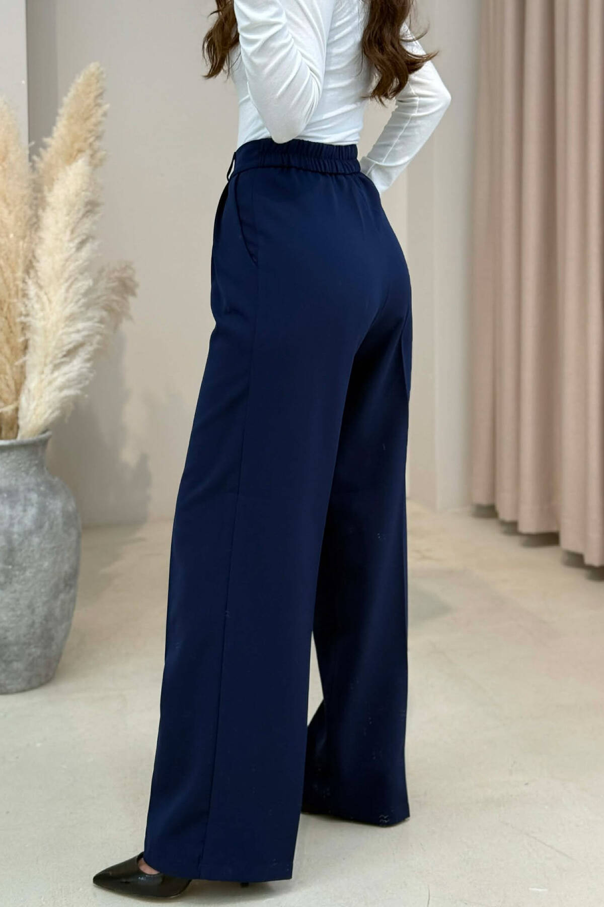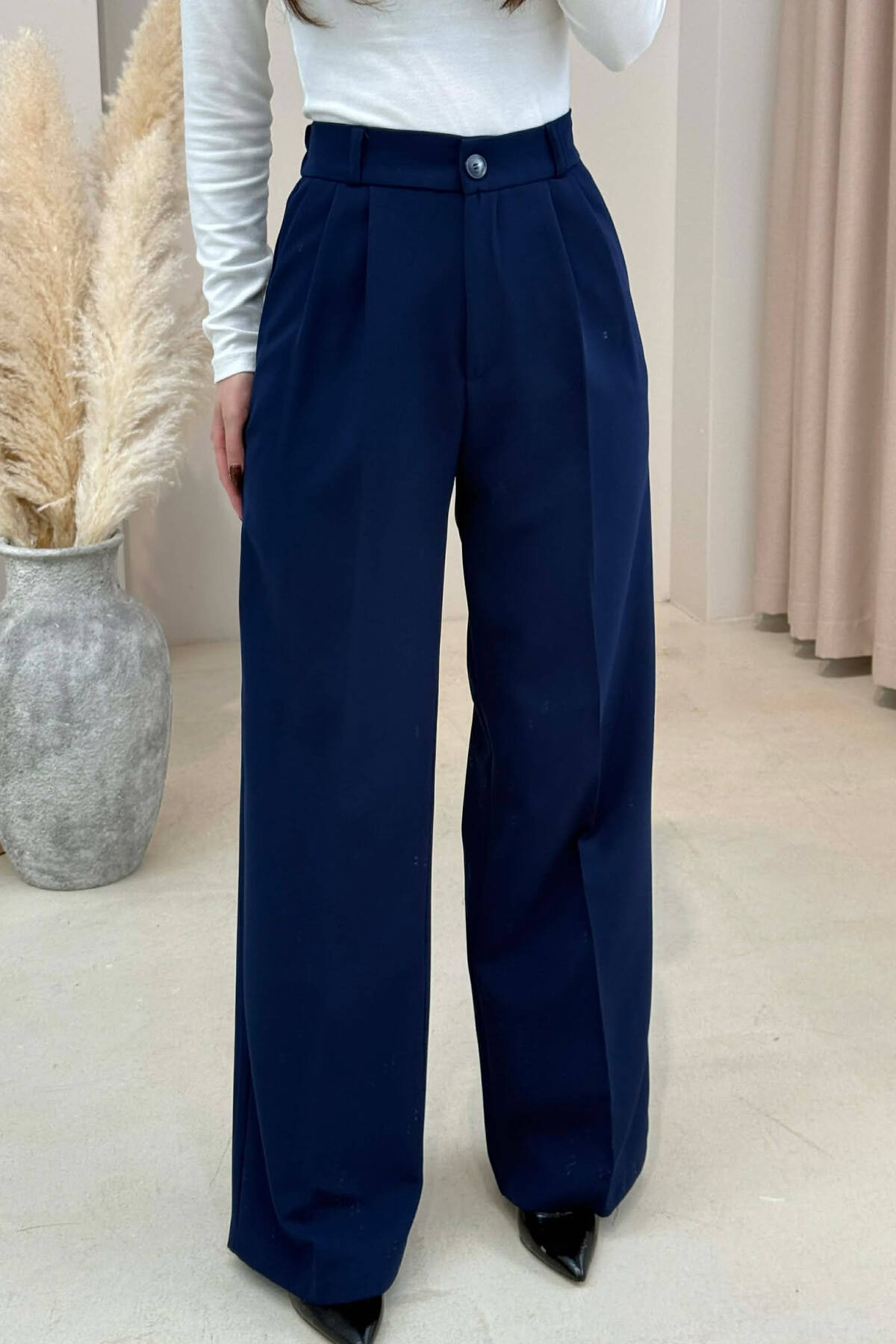 PANTALLONA TE GJERA NJE NGJYRESHE ME DETAJIN E RRIPIT PER FEMRA NE NGJYRE BLU