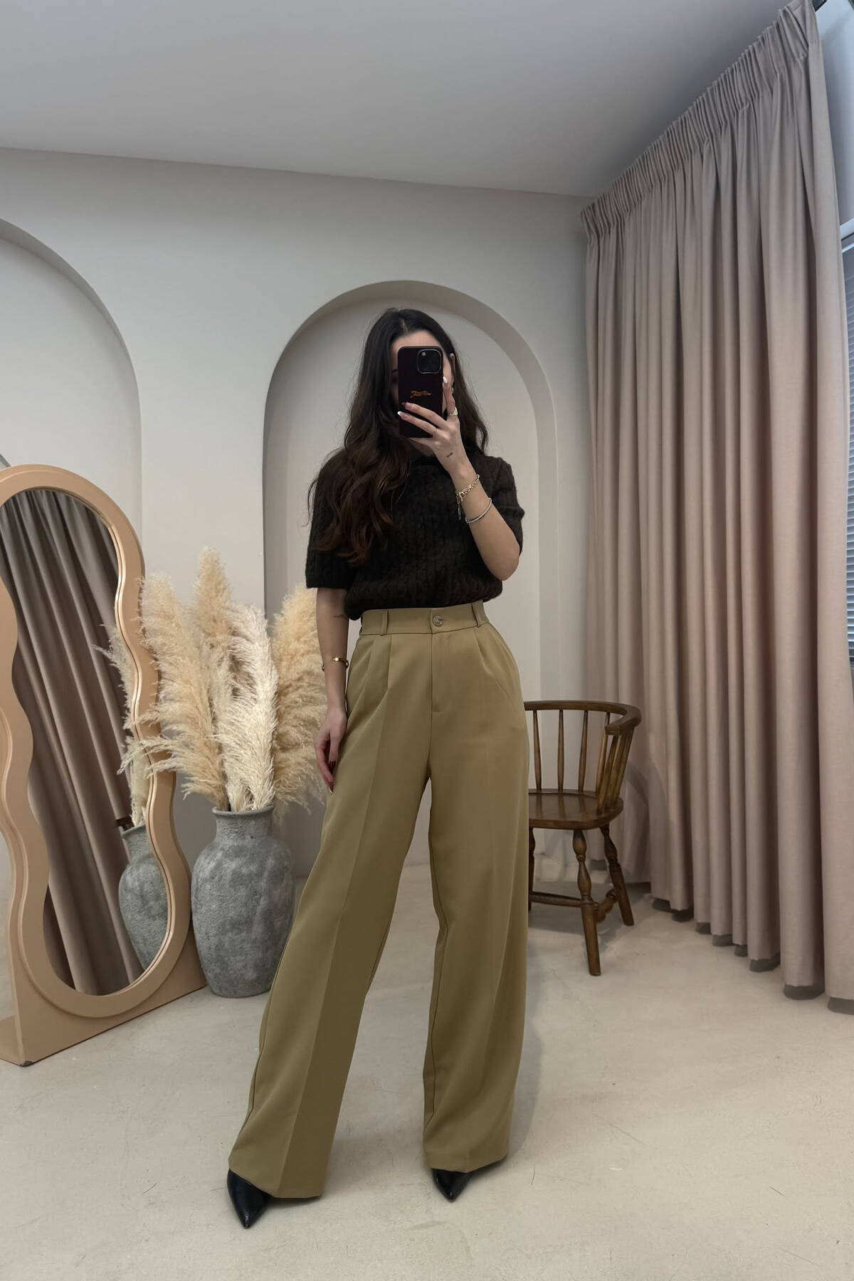 PANTALLONA TE GJERA ME DIZJAN KATRORESH PER FEMRA NE NGJYRE KAFE