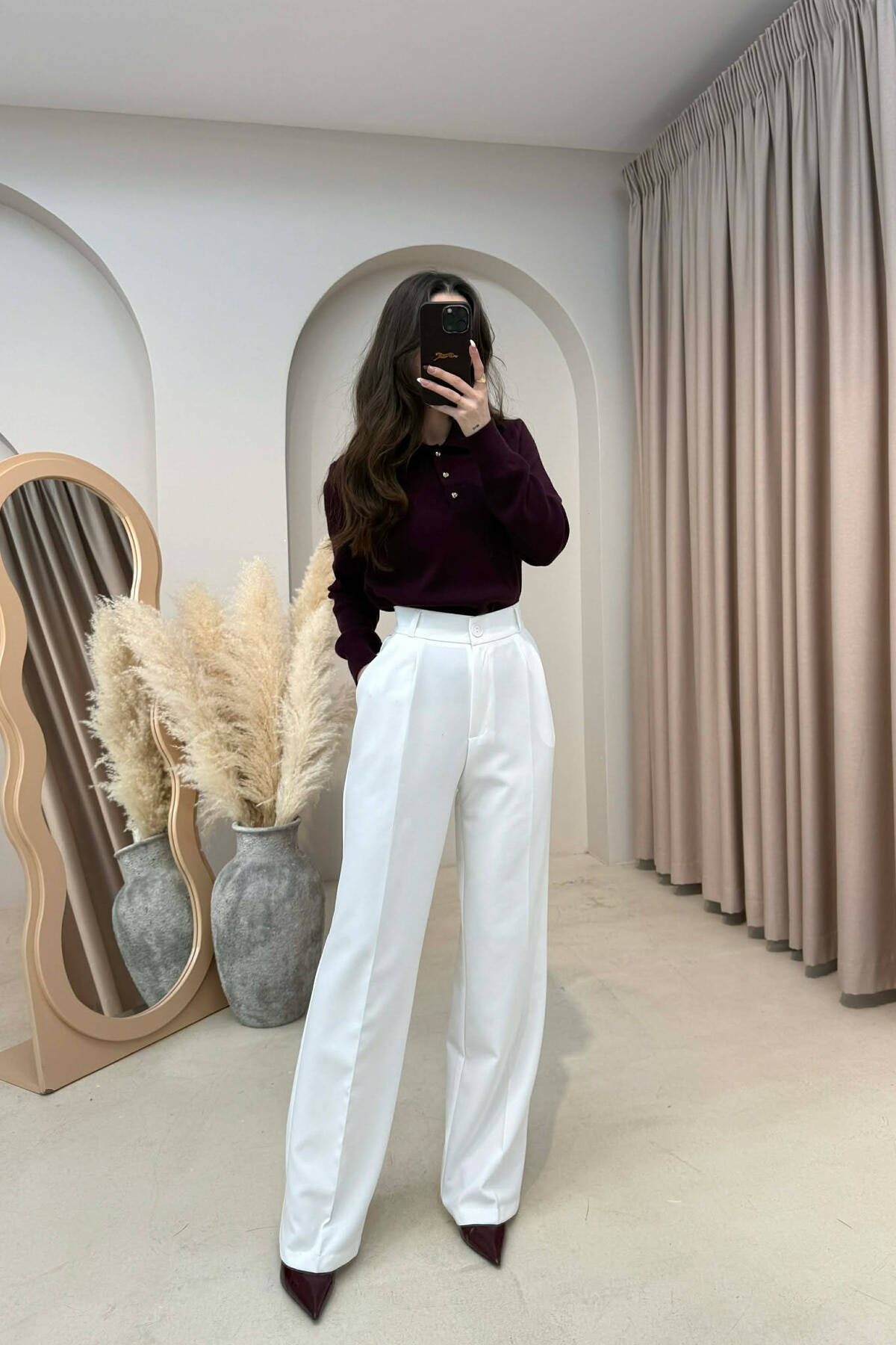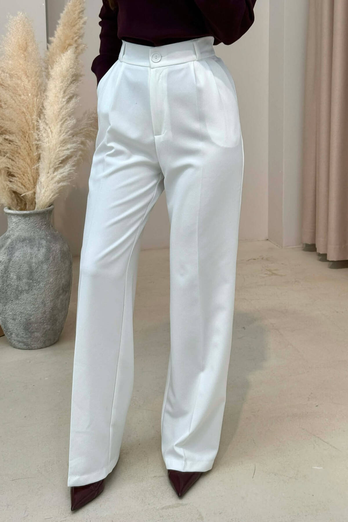 PANTALLONA TE GJERA NJE NGJYRESHE PER FEMRA NE NGJYRE TE BARDHE