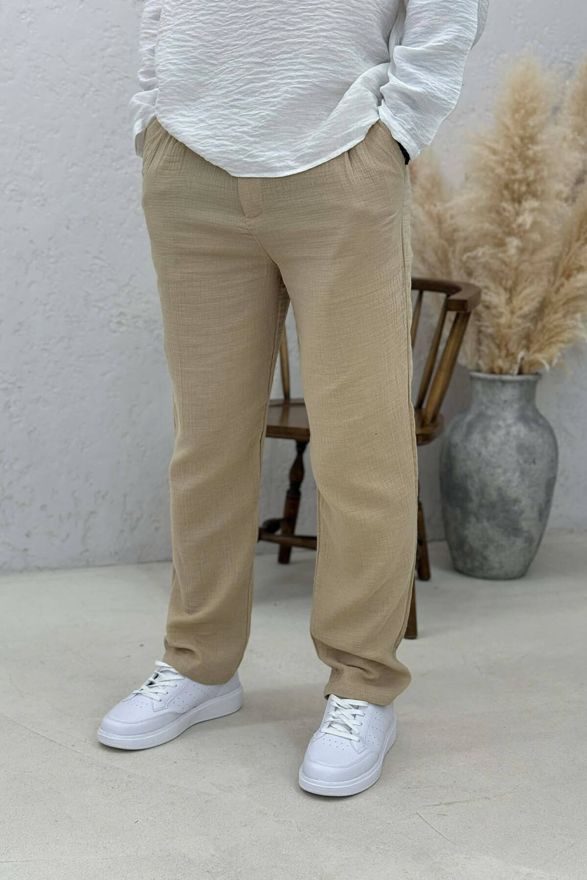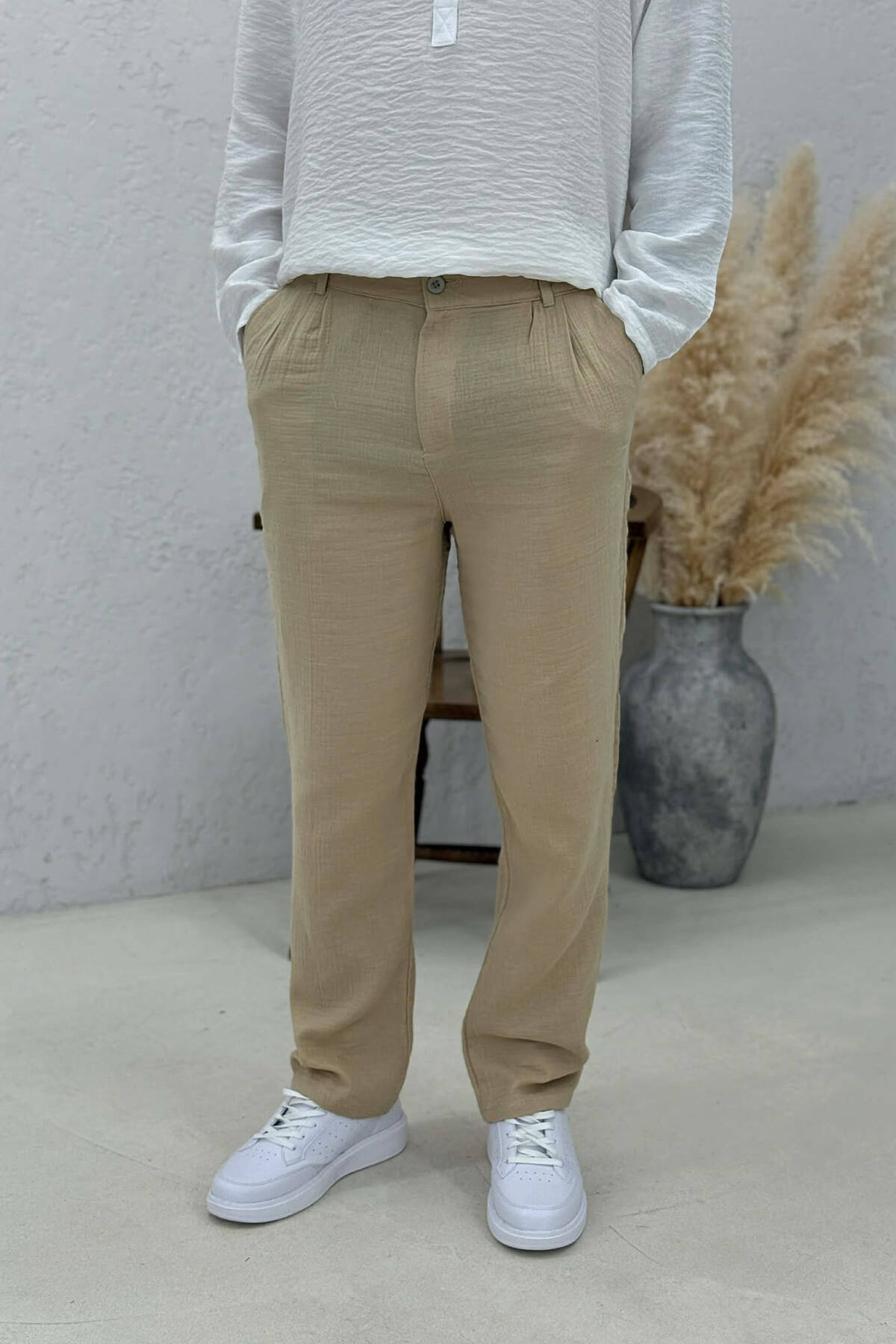 PANTALLONA TË THJESHTA NJËNGJYRËSHE PËR MESHKUJ NË NGJYRËN BEZHË