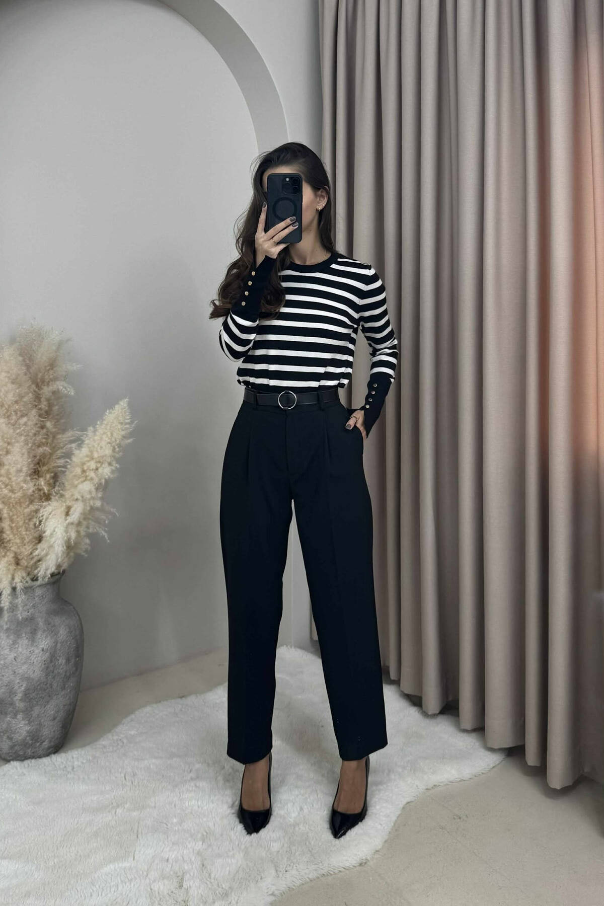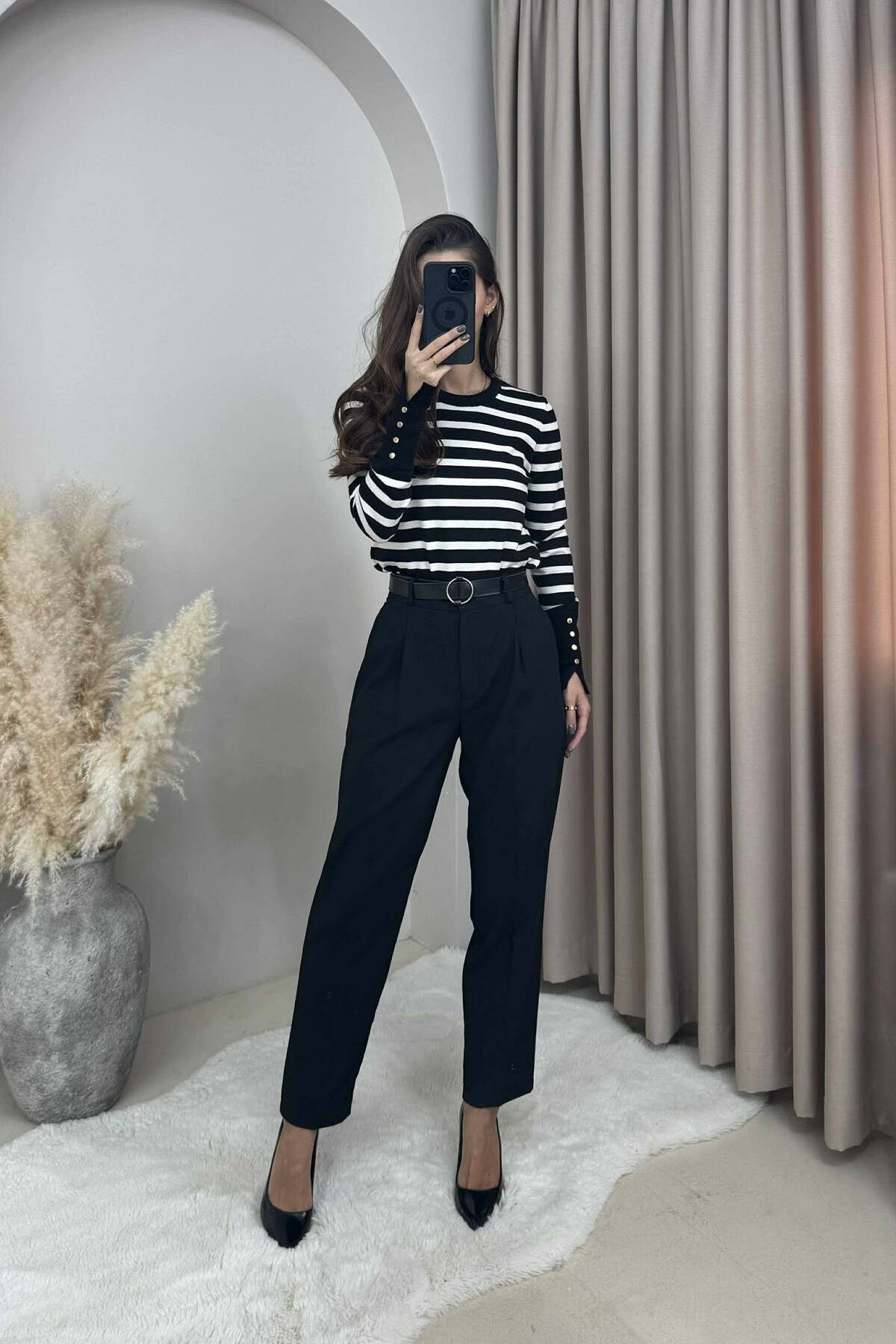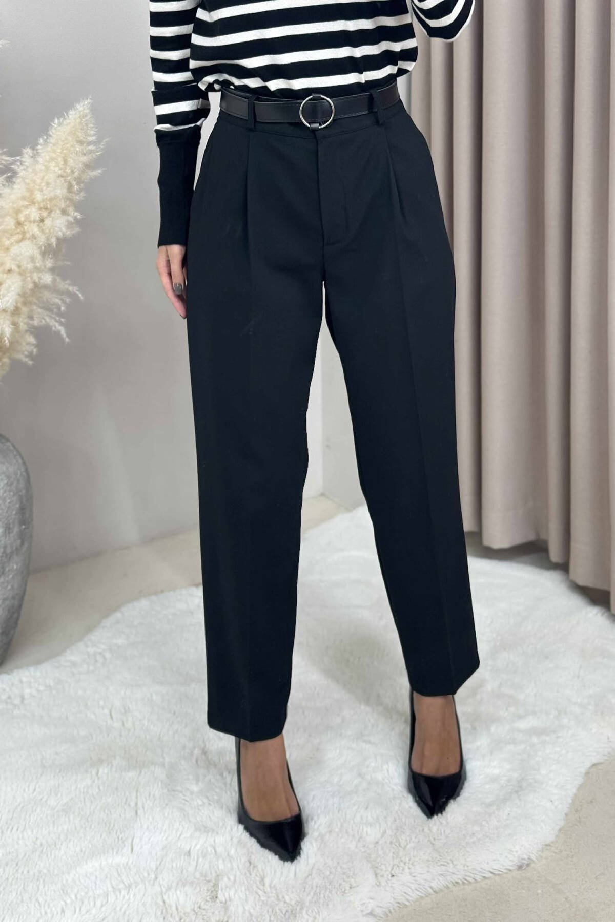PANTALLONA NJË NGJYRËSHE ME BEL GJYSËM ELASTIK & RRIP PËR FEMRA NË NGJYRË TË ZEZË