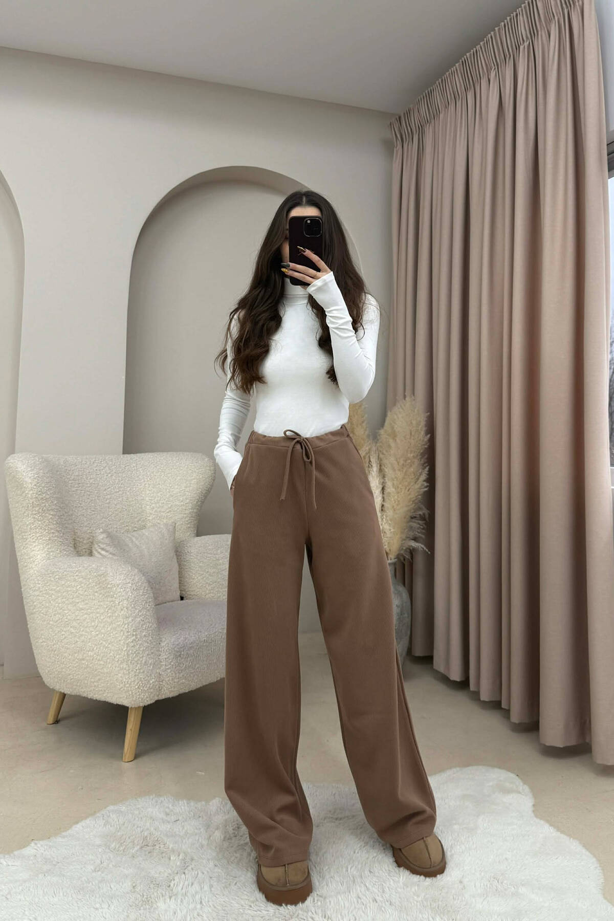 PANTALLONA TE GJERA NJE NGJYRESHE PER FEMRA NE NGJYRE KAFE