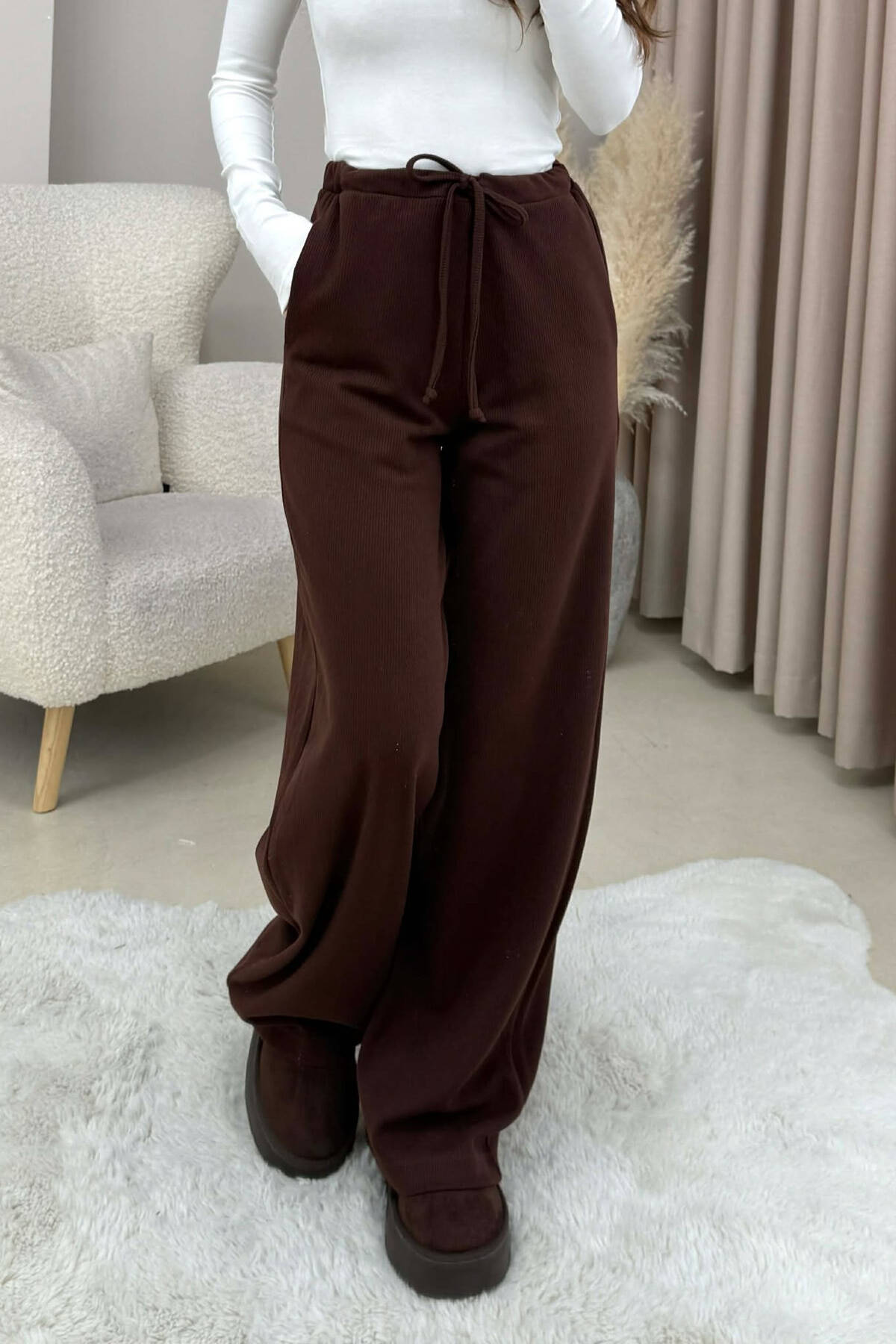 PANTALONA TE GJERA NJE NGJYRESHE PER FEMRA NE NGJYRE KAFE
