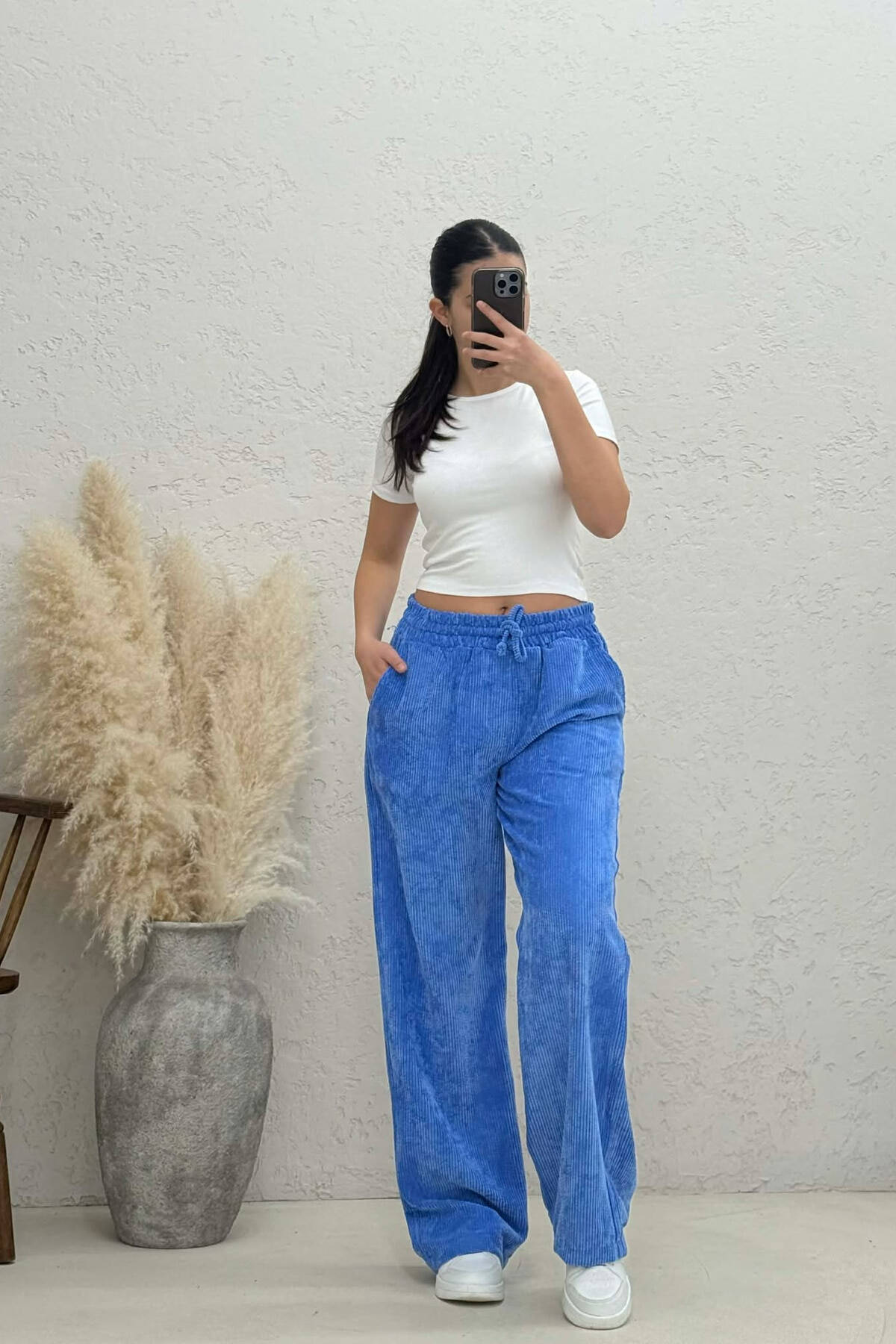 PANTALLONA ME BEL ELASTIK PER FEMRA NE NGJYRE BLU