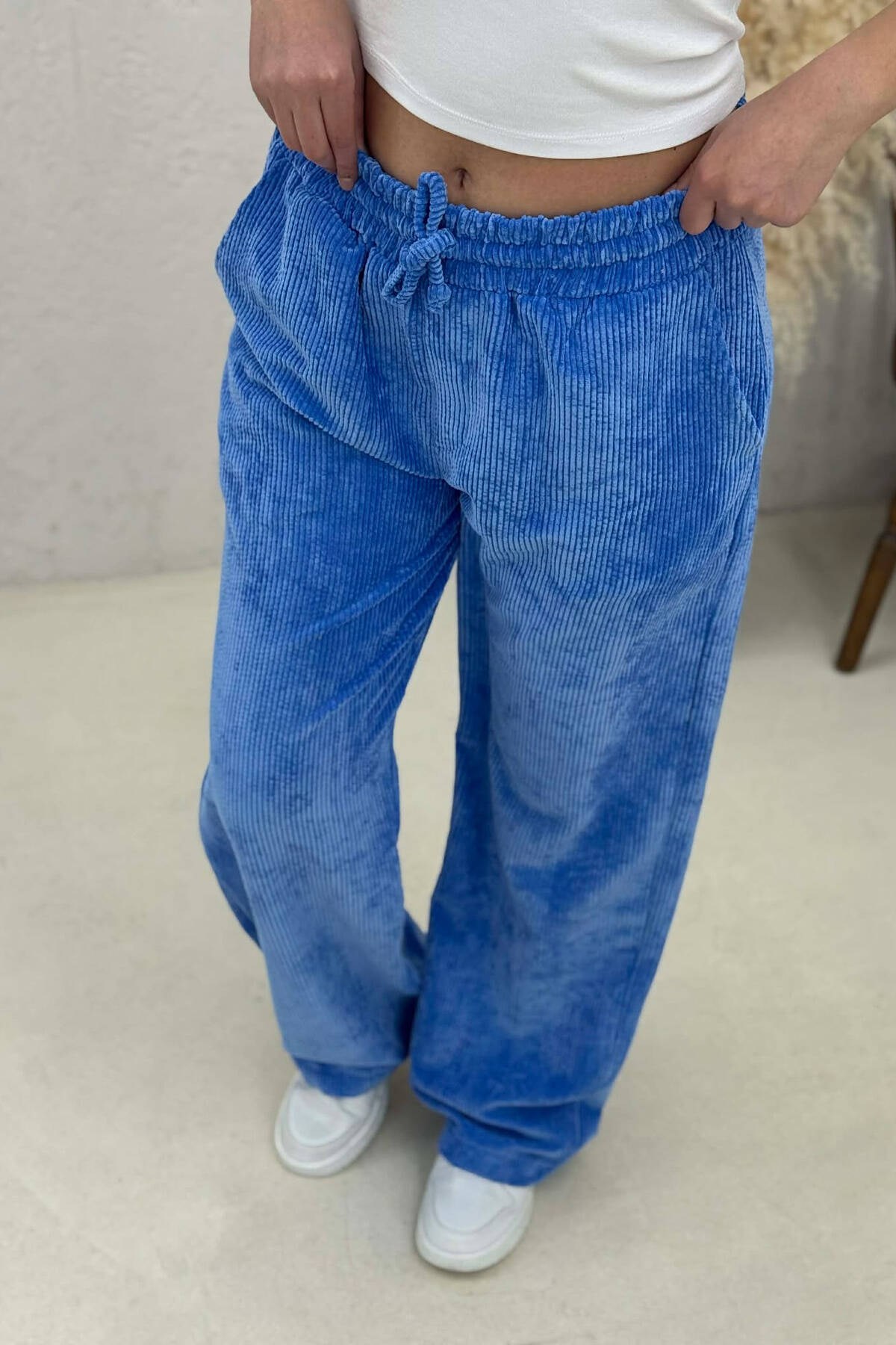 PANTALLONA ME BEL ELASTIK PER FEMRA NE NGJYRE BLU TE ZBARDHUR