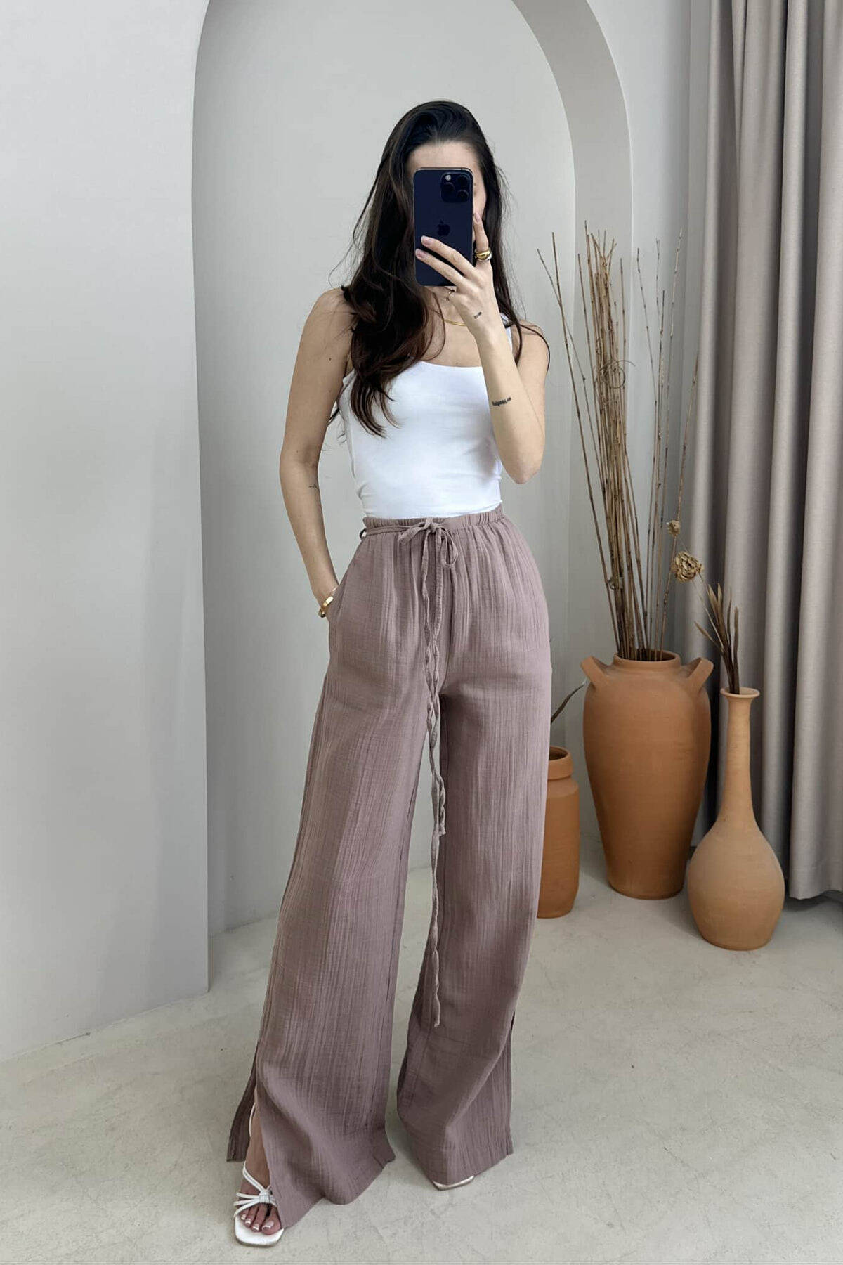 PANTALONA TE GJERA NJE NGJYRESHE PER FEMRA NE NGJYRE KAFE