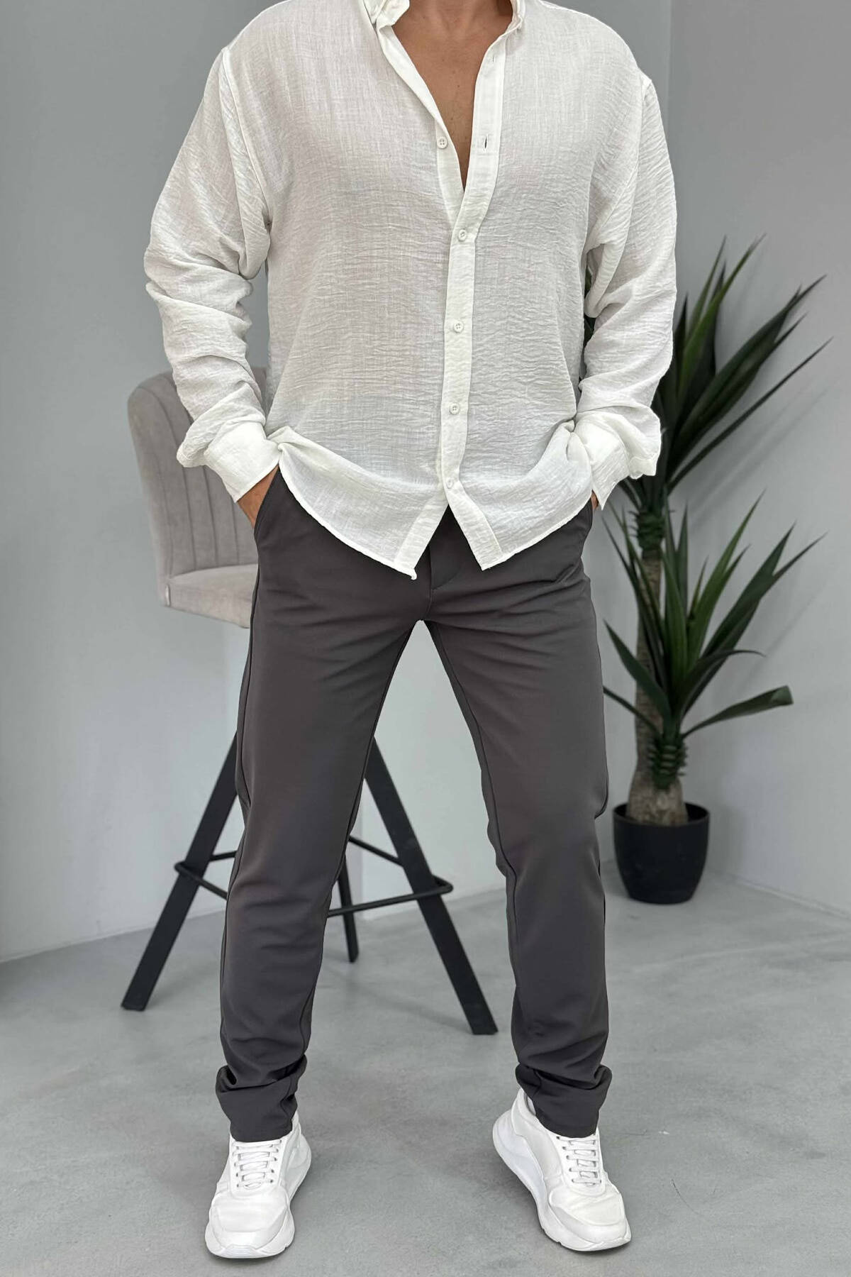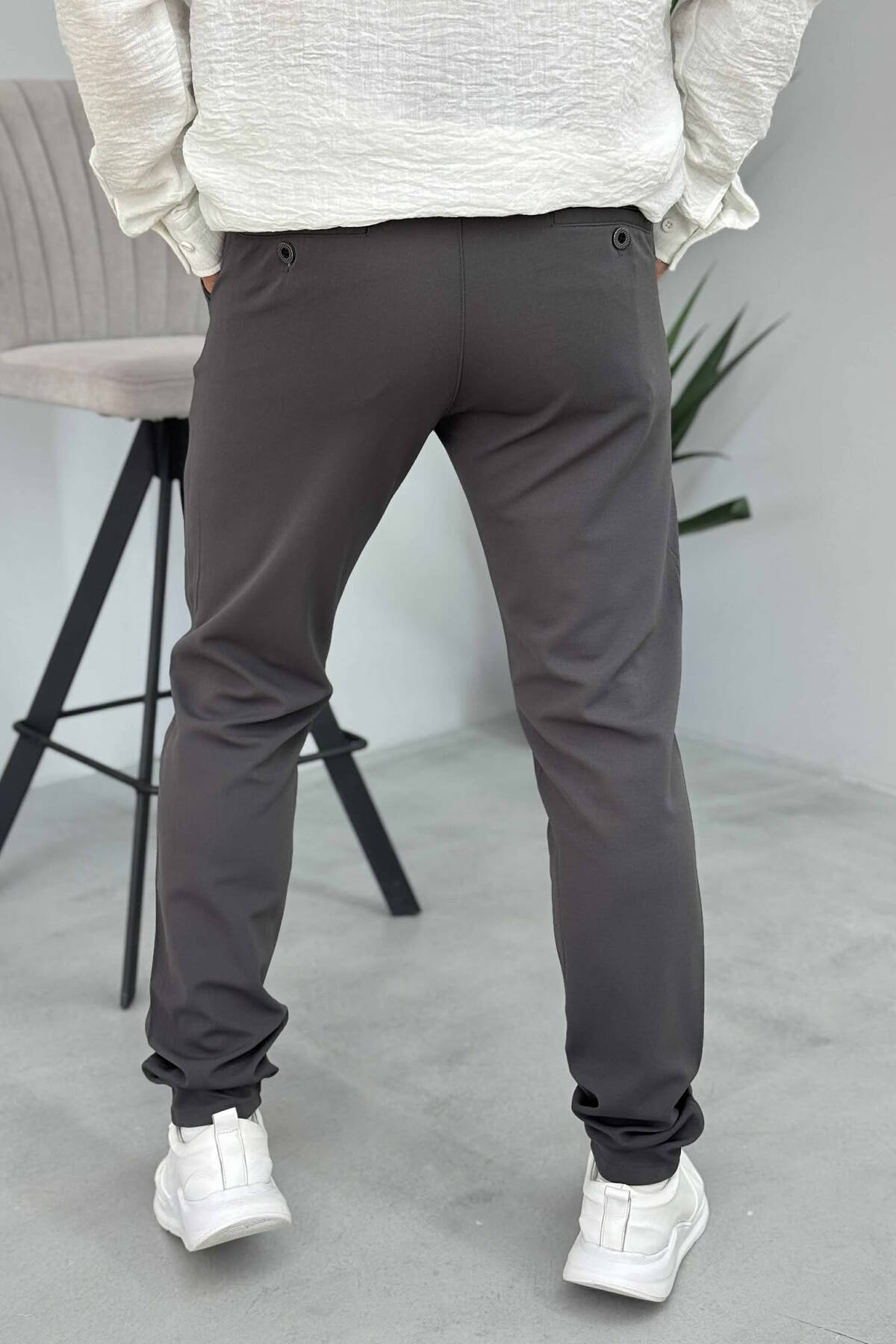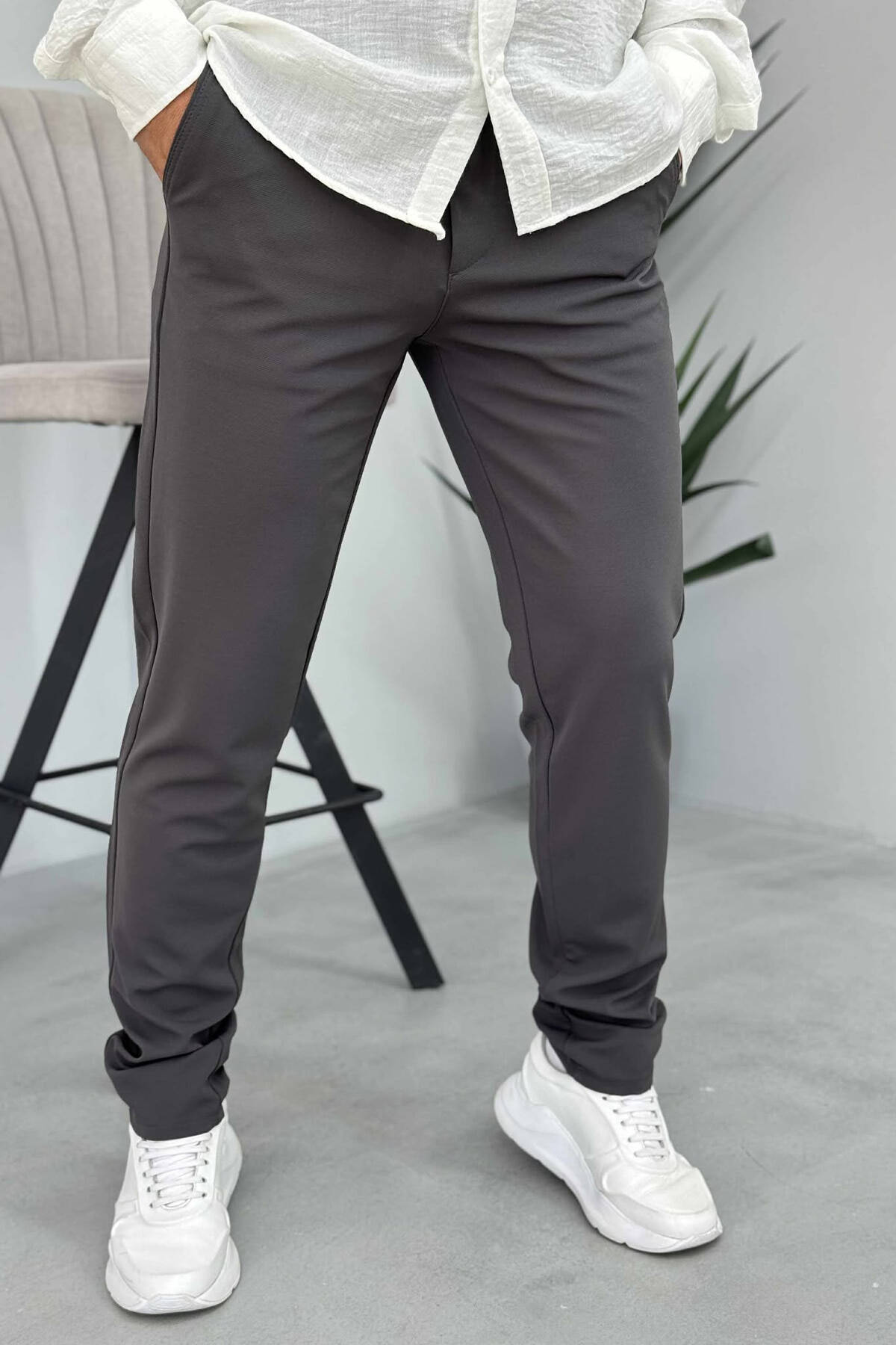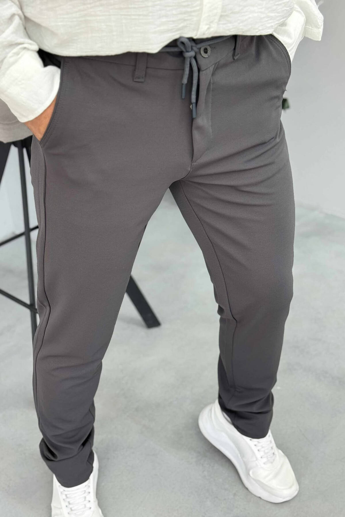 PANTALLONA NJË NGJYRËSHE ME DETAJIN E LIDHSES PËR MESHKUJ NË NGJYRËN GRI E ERRËT
