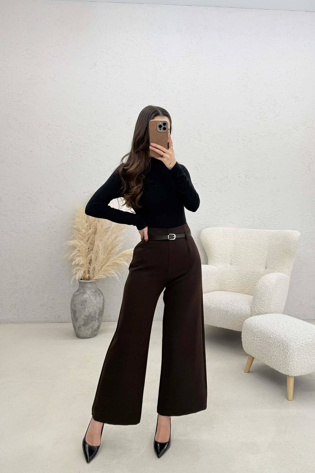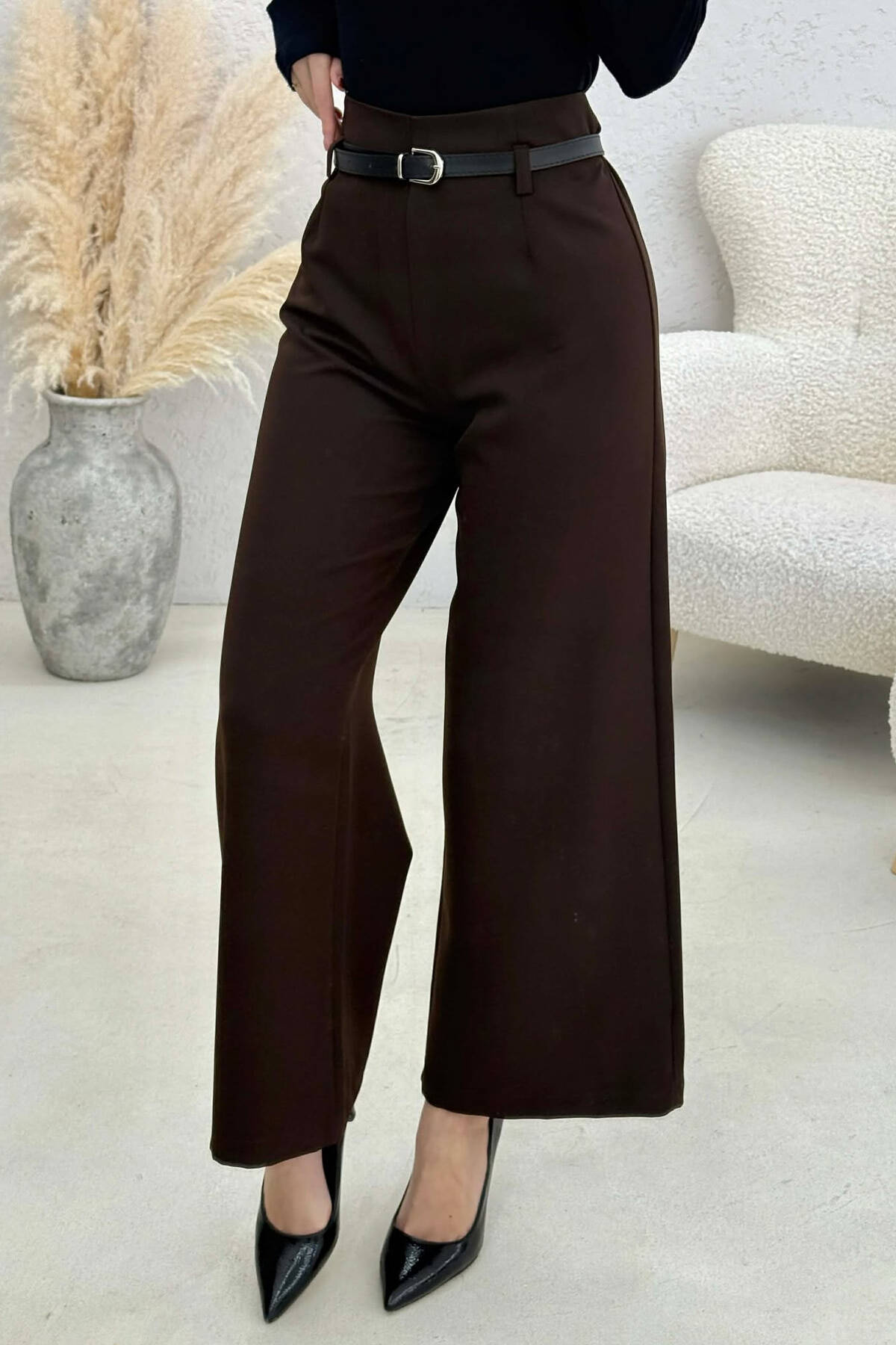 PANTALLONA TE GJERA ME DIZJAN KATRORESH PER FEMRA NE NGJYRE KAFE