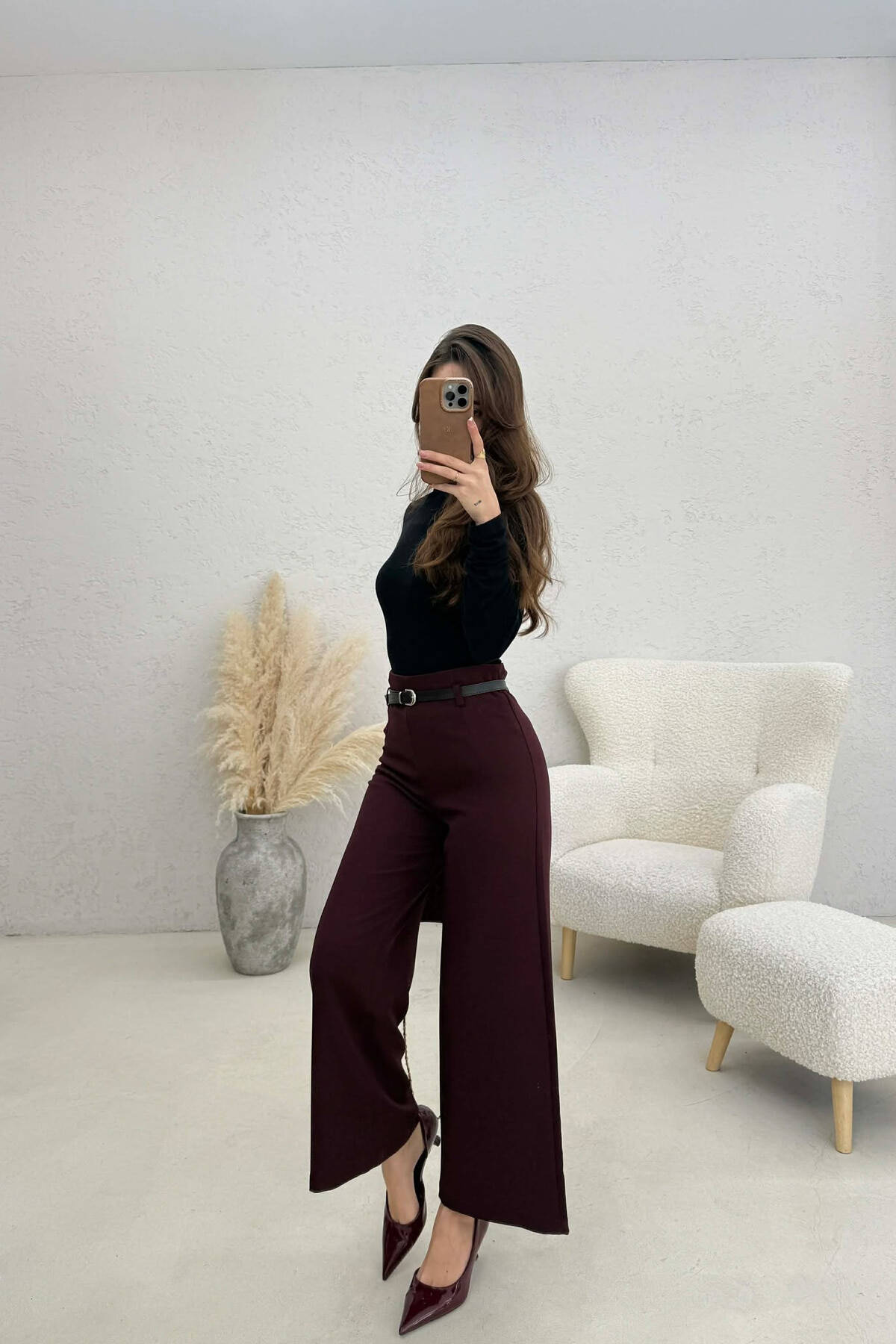 PANTALLONA NJE NGJYRESHE ME DETAJIN E RRIPIT NE NGJYRE VISHNJE TE ERRET