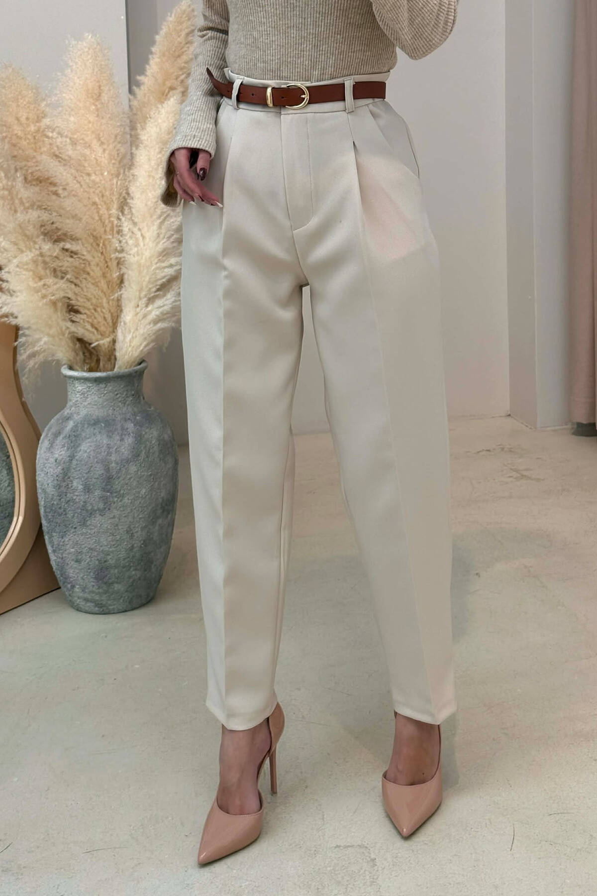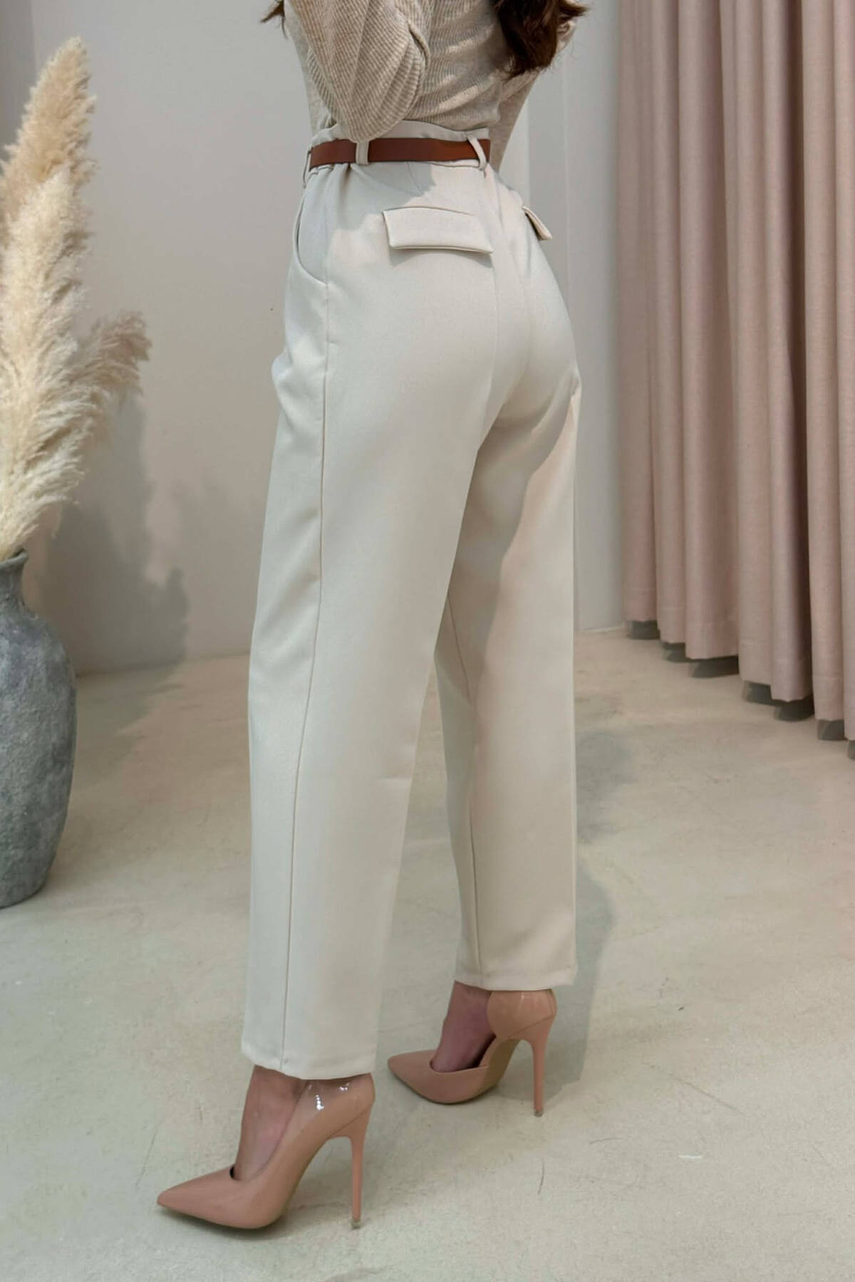 PANTALLONA NJE NGJYRESHE ME DETAJIN E RRIPIT PER FEMRA NE NGJYRE BEZHE