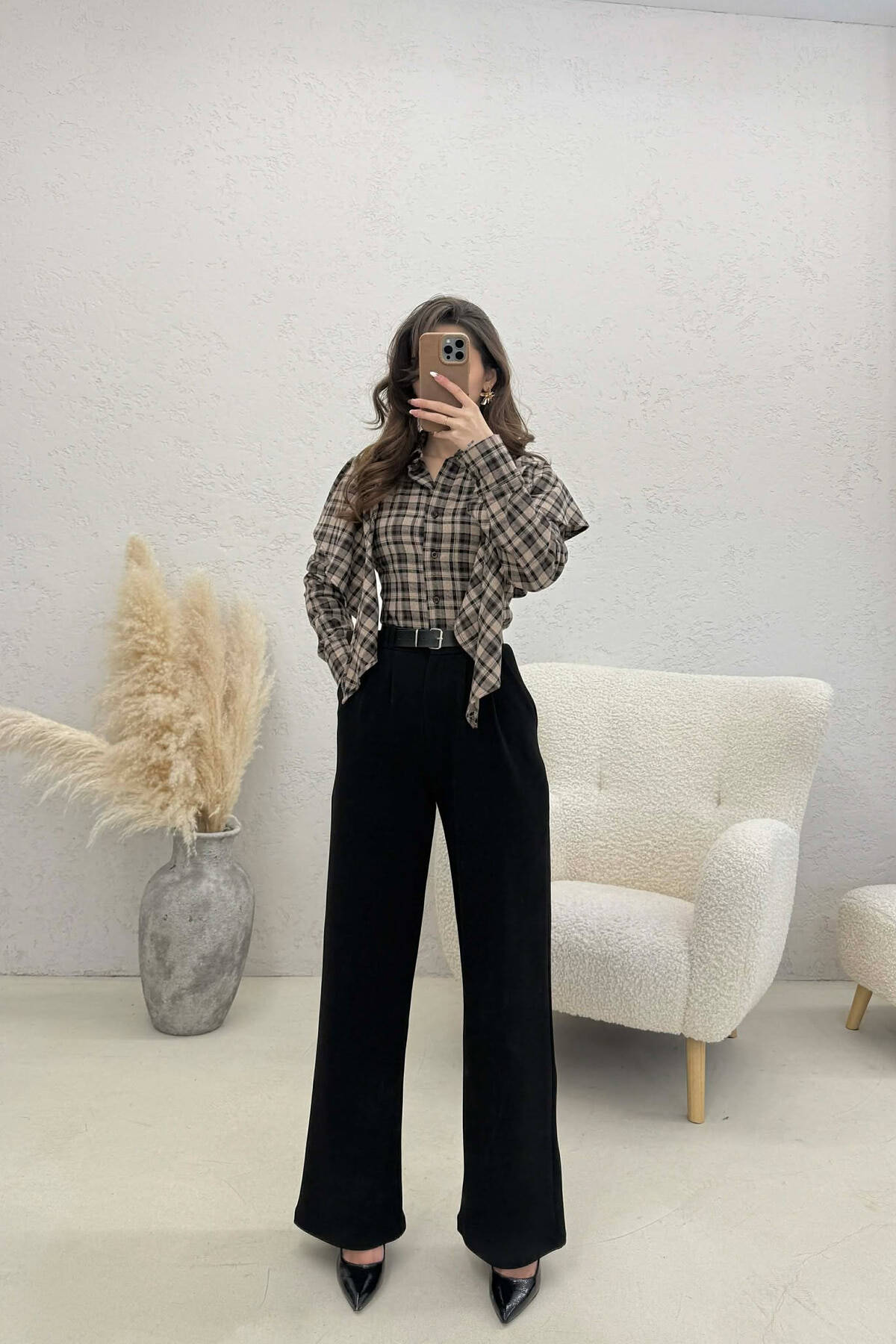 PANTALLONA TË GJERA PËR FEMRA NË NGJYRE KAFE