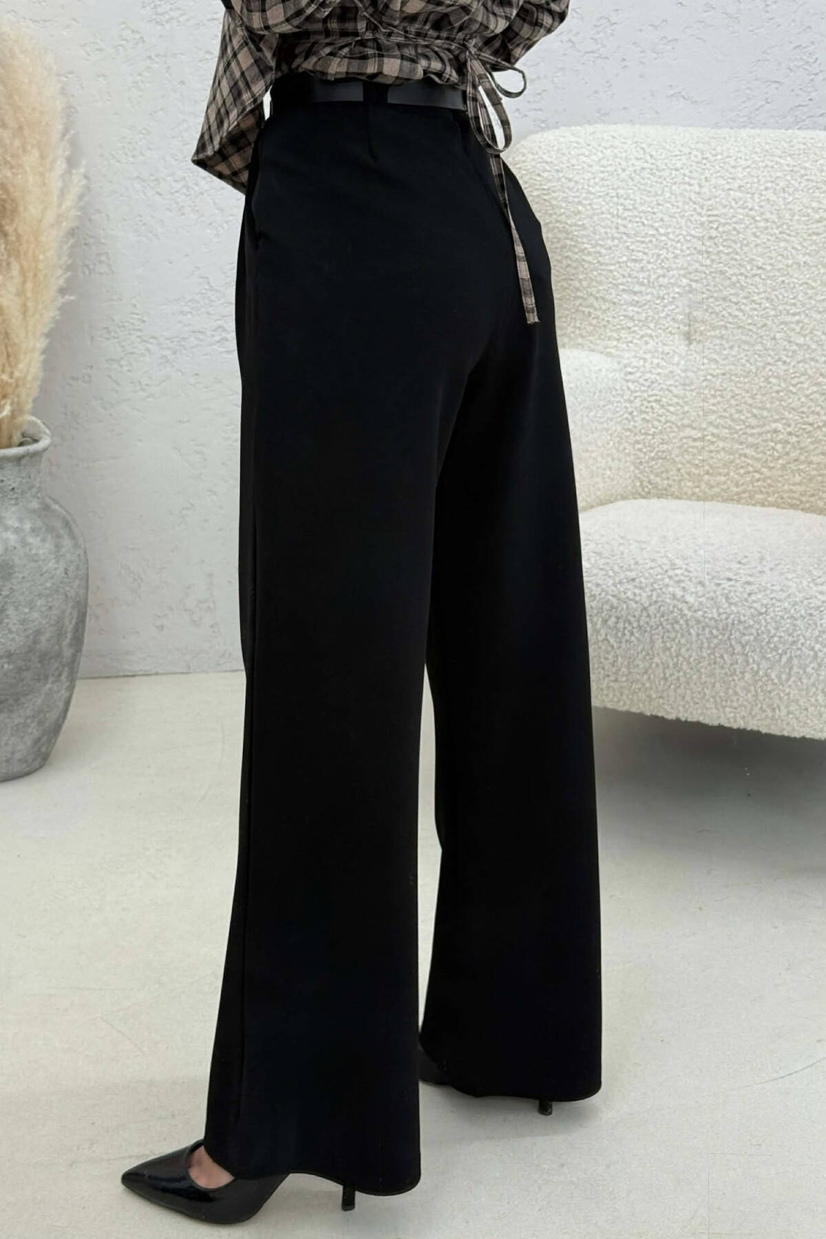 PANTALLONA NJË NGJYRËSHE ME DETAJIN E RRIPIT PËR FEMRA NË NGJYRËN E ZEZË