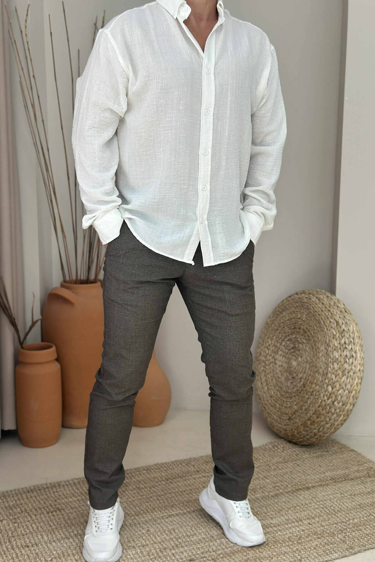 PANTALLONA TË THJESHTA NJËNGJYRËSHE PËR MESHKUJ NË NGJYRËN BEZHË