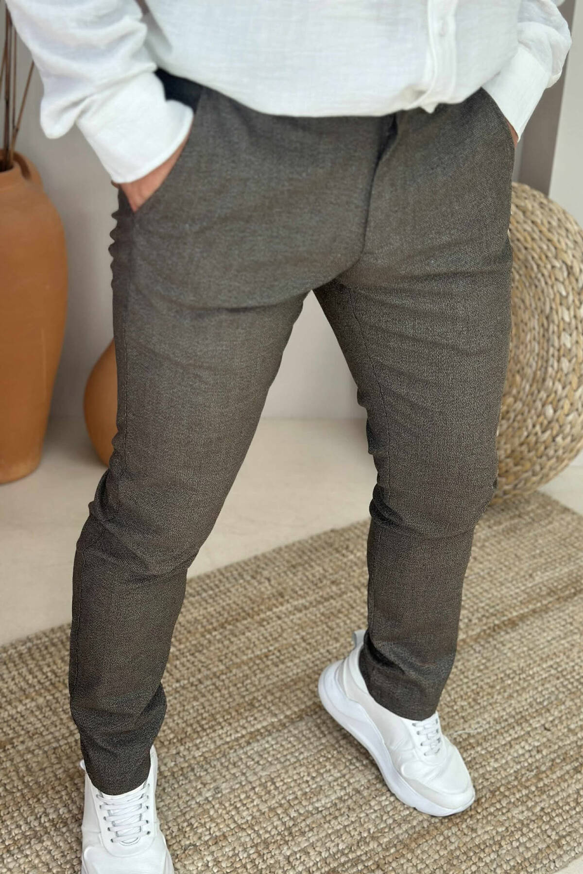 PANTALLONA NJË NGJYRËSHE ME DIZAJN TË THJESHTË PËR MESHKUJ NË NGJYRËN KAFE E ZBARDHUR