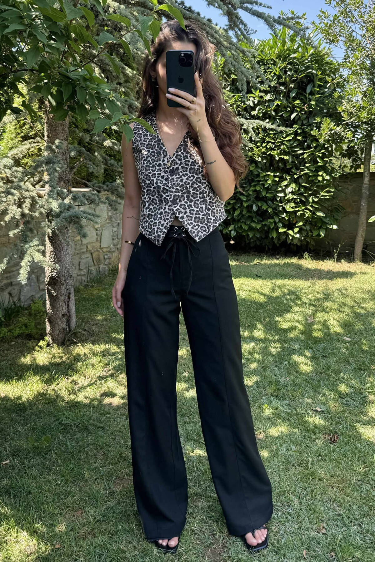 PANTALLONA NJË NGJYRËSHE ME LIDHSE PËR FEMRA NË NGJYRËN E ZEZË