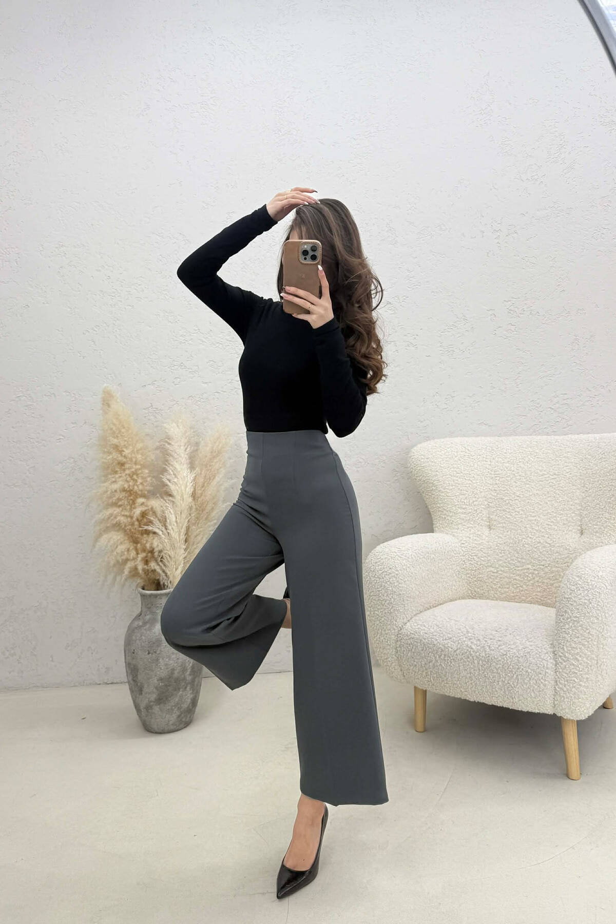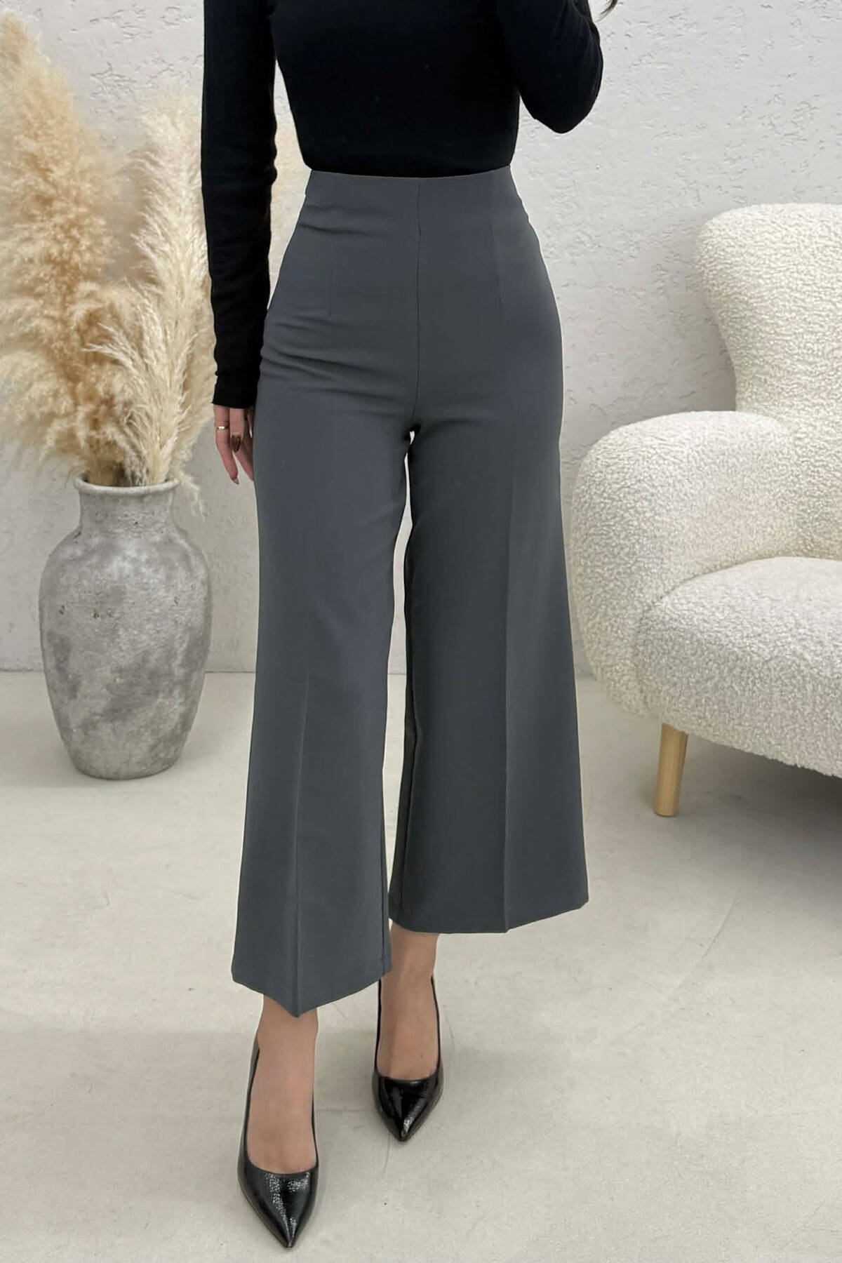 PANTALLONA TË GJERA PËR FEMRA NË NGJYRE GRI TE ERRET
