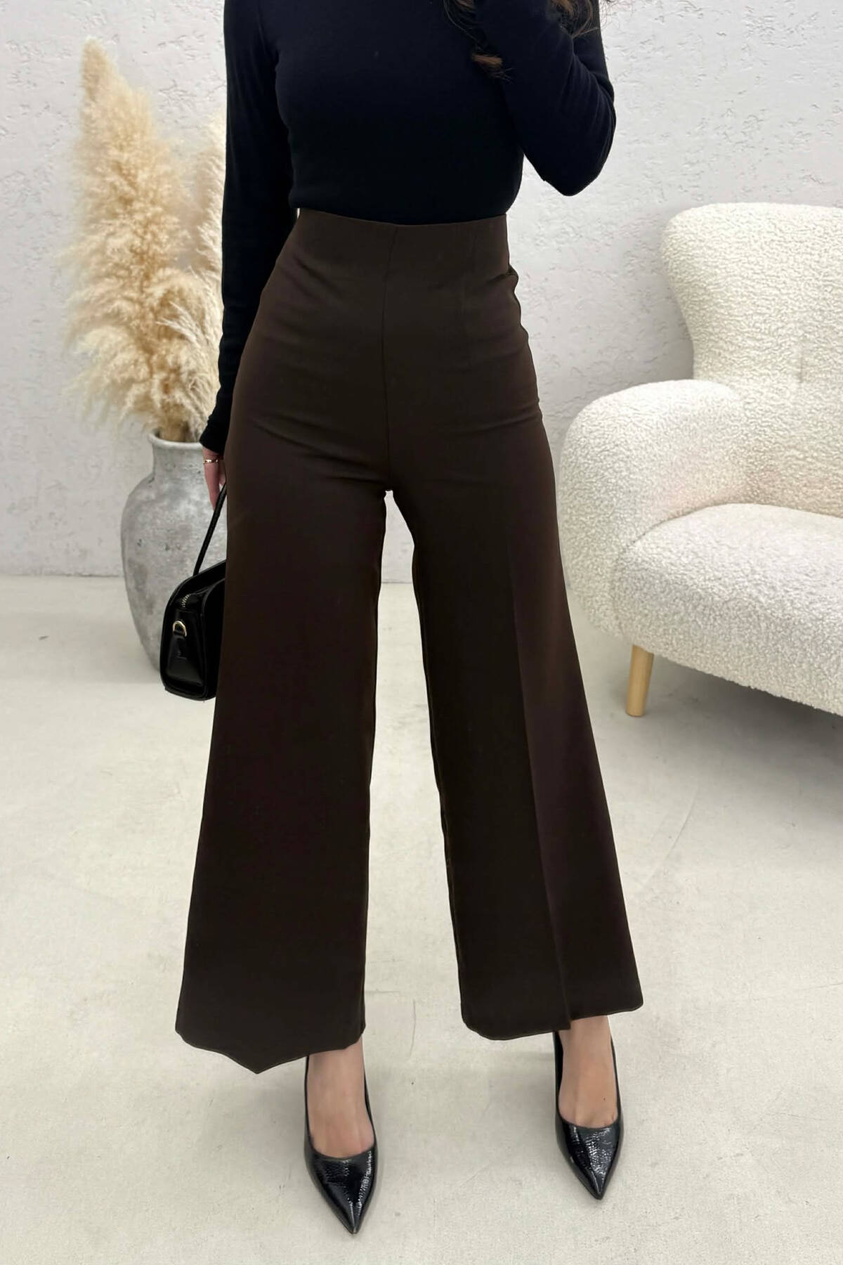 PANTALLONA TË GJERA PËR FEMRA NË NGJYRE KAFE