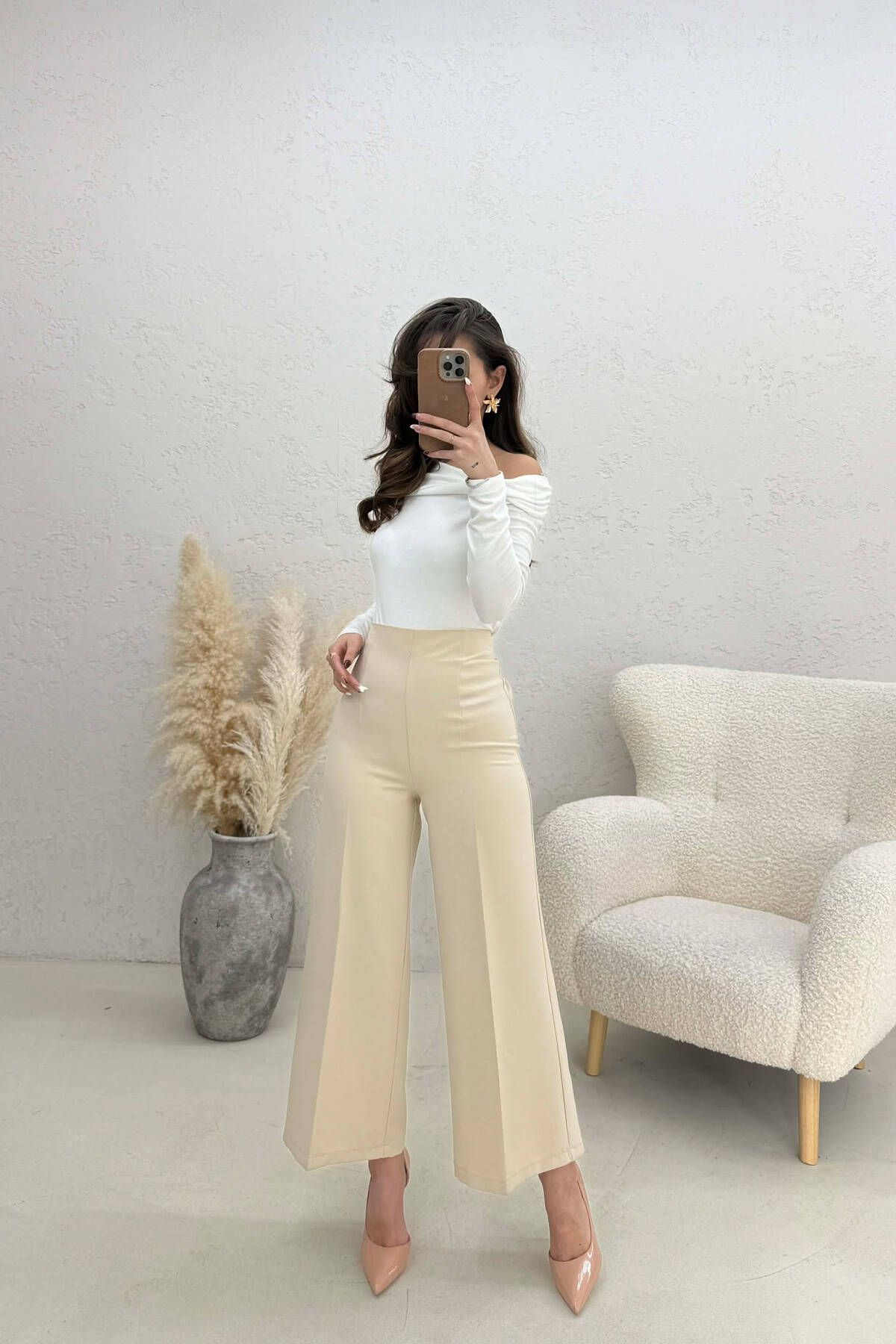 PANTALLONA NJE NGJYRESHE ME ZINXHIR ANESOR PER FEMRA NE NGJYRE KREM