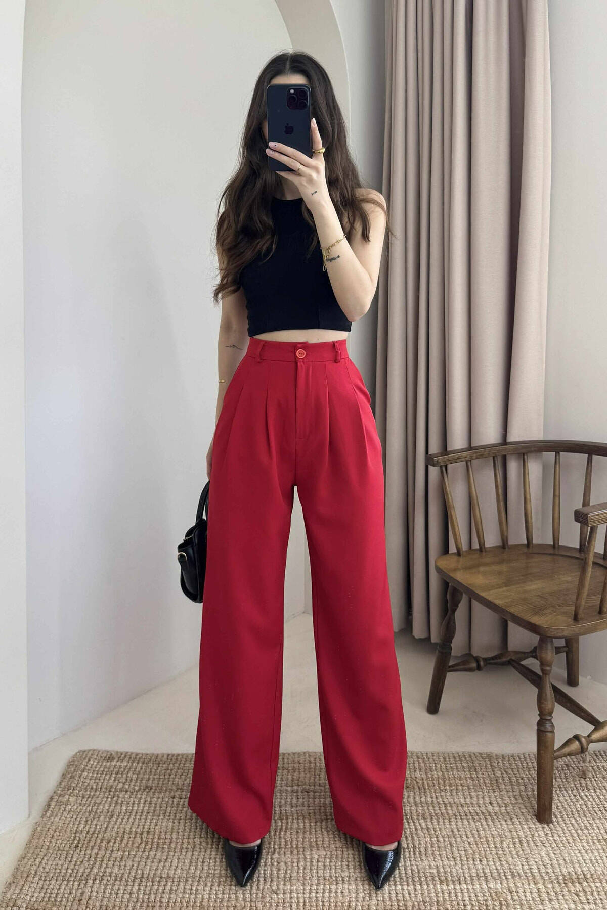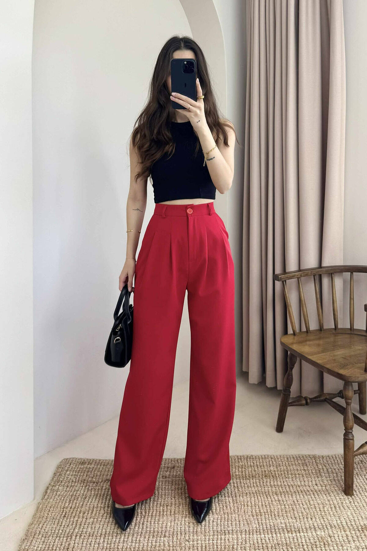 PANTALLONA NJË NGJYRËSHE TË GJËRA PËR FEMRA NË NGJYRËN E KUQE