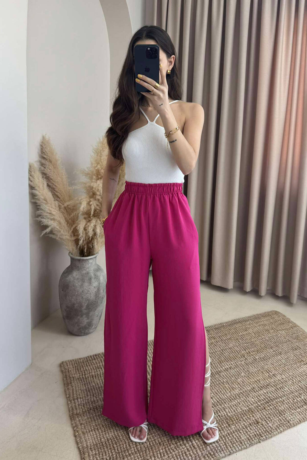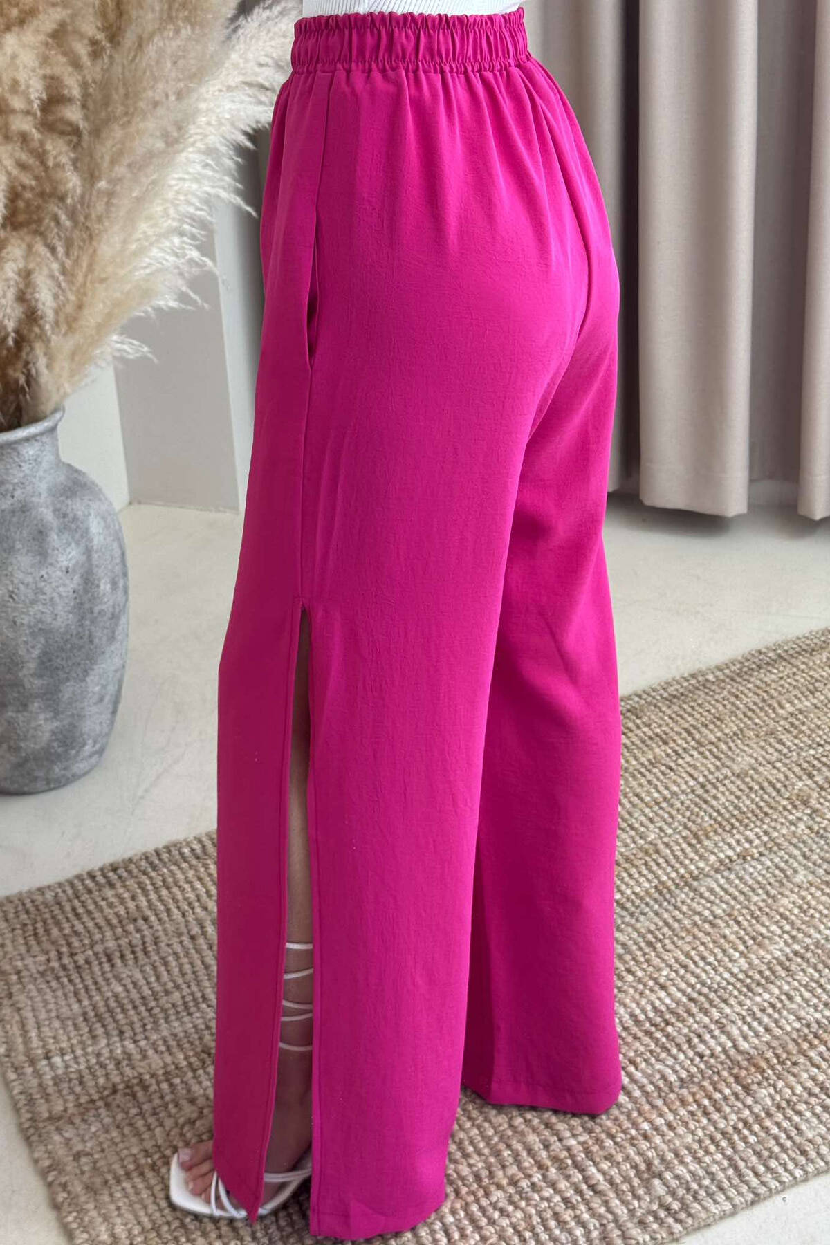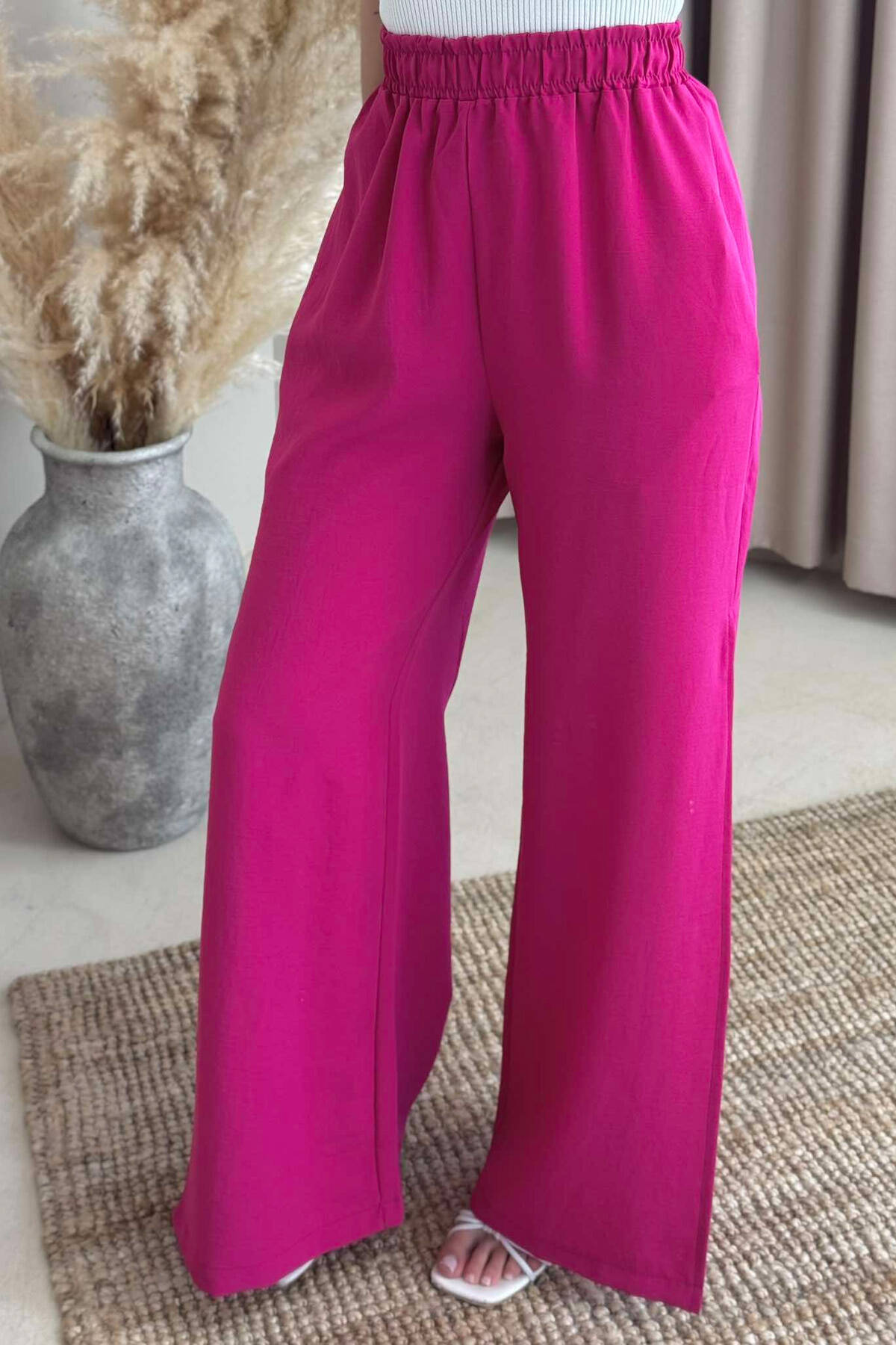 PANTALLONA NJË NGJYRËSHE TË GJERA PËR FEMRA NË NGJYRËN ÇIKLAMI