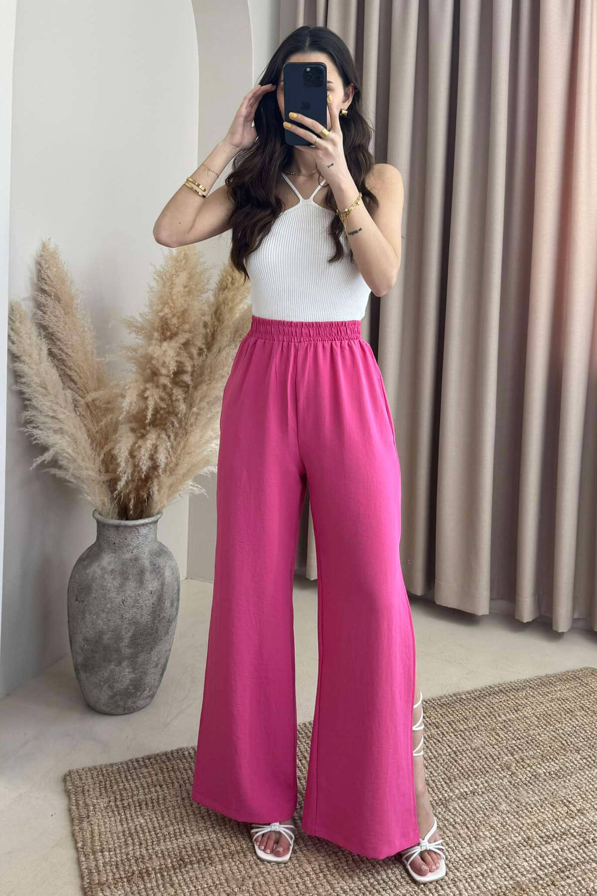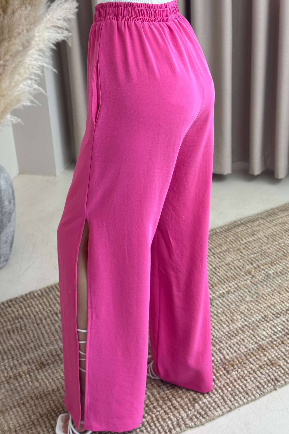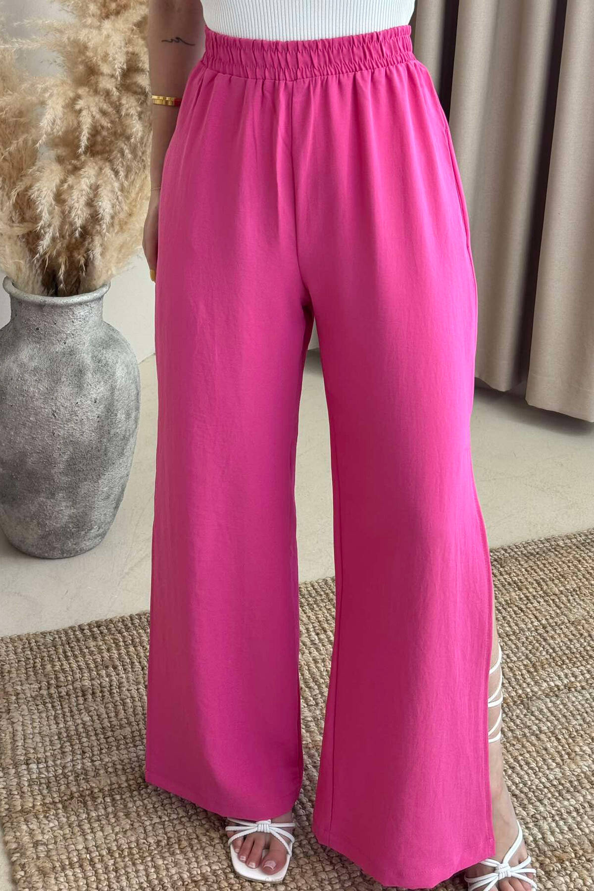 PANTALLONA NJË NGJYRËSHE TË GJERA PËR FEMRA NË NGJYRËN ROZË