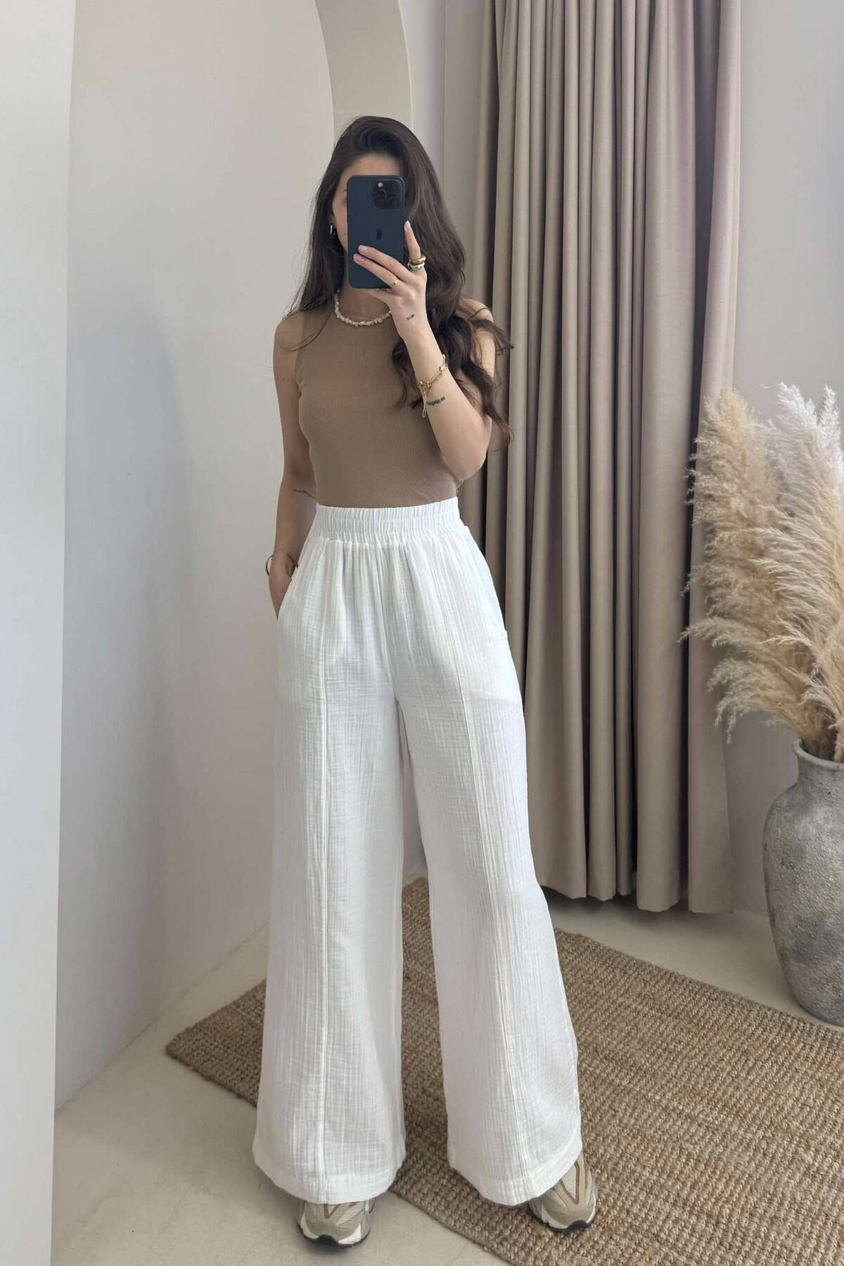 PANTALLONA TË GJERA NJË NGJYRËSHE PËR FEMRA NË NGJYRËN E BARDHË