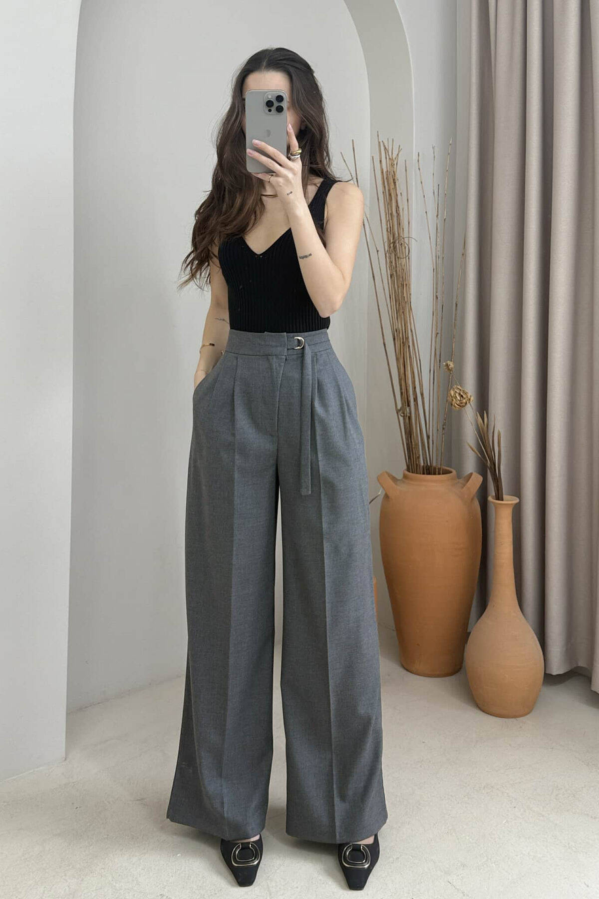PANTALLONA NJË NGJYRËSHE TË GJERA PËR FEMRA NË NGJYRË GRI E ERRËT
