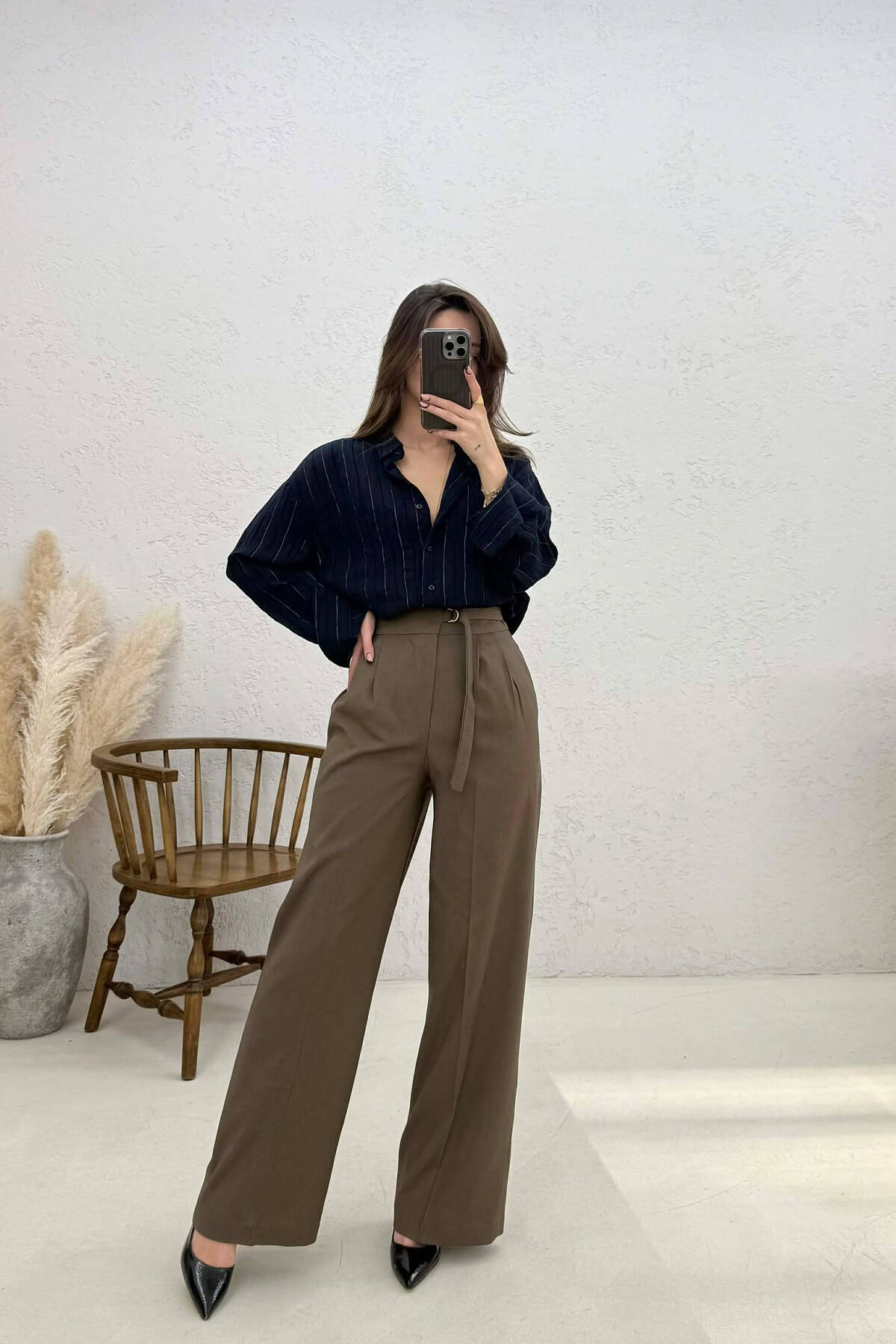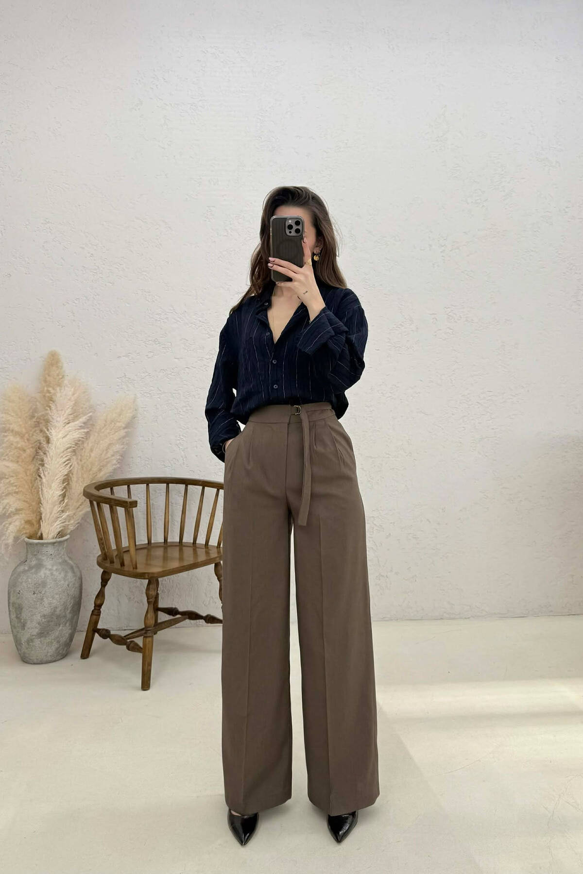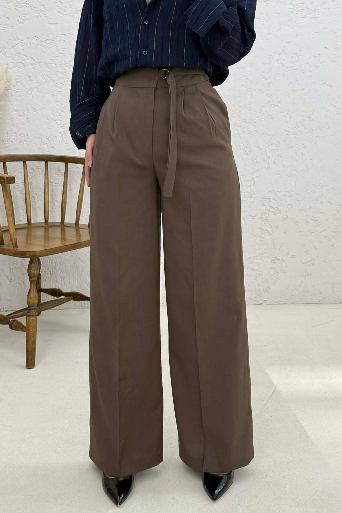 PANTALONA TE GJERA NJE NGJYRESHE PER FEMRA NE NGJYRE KAFE