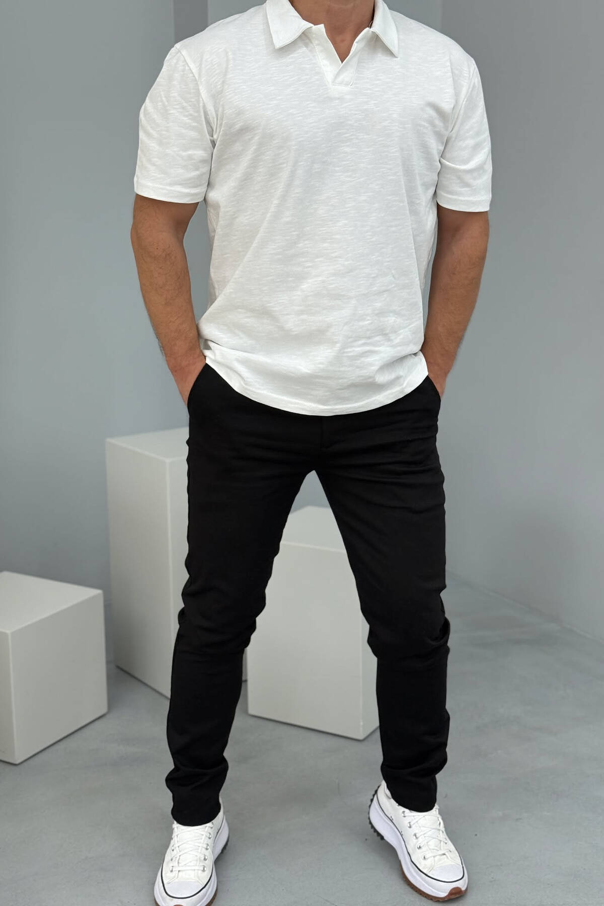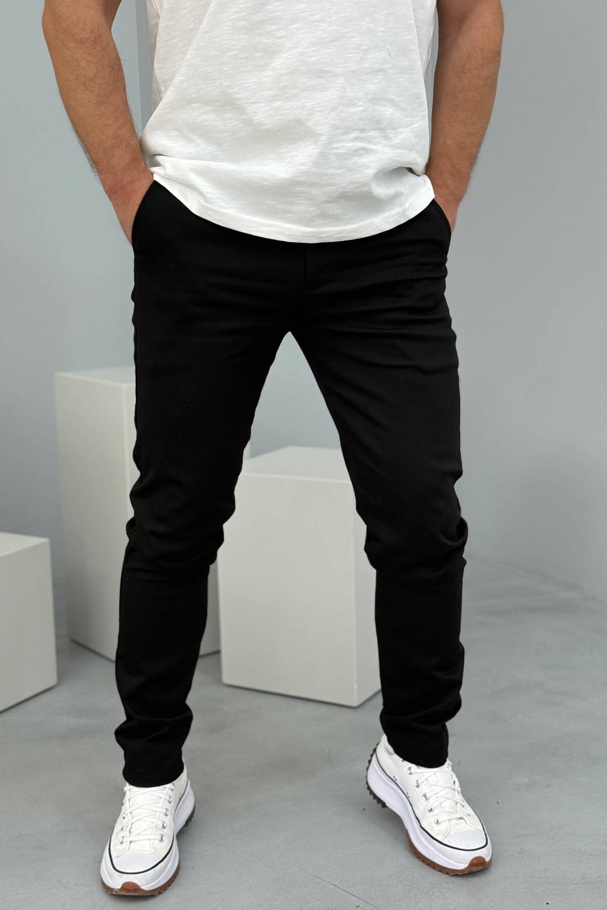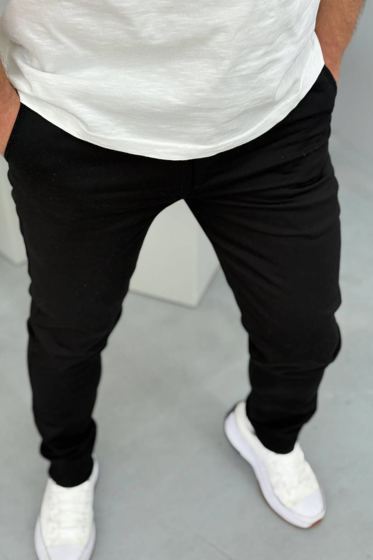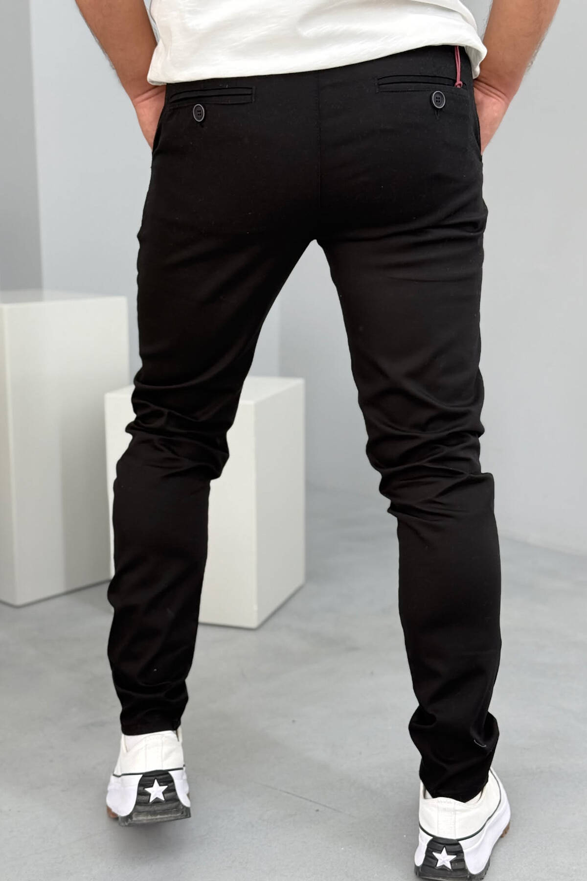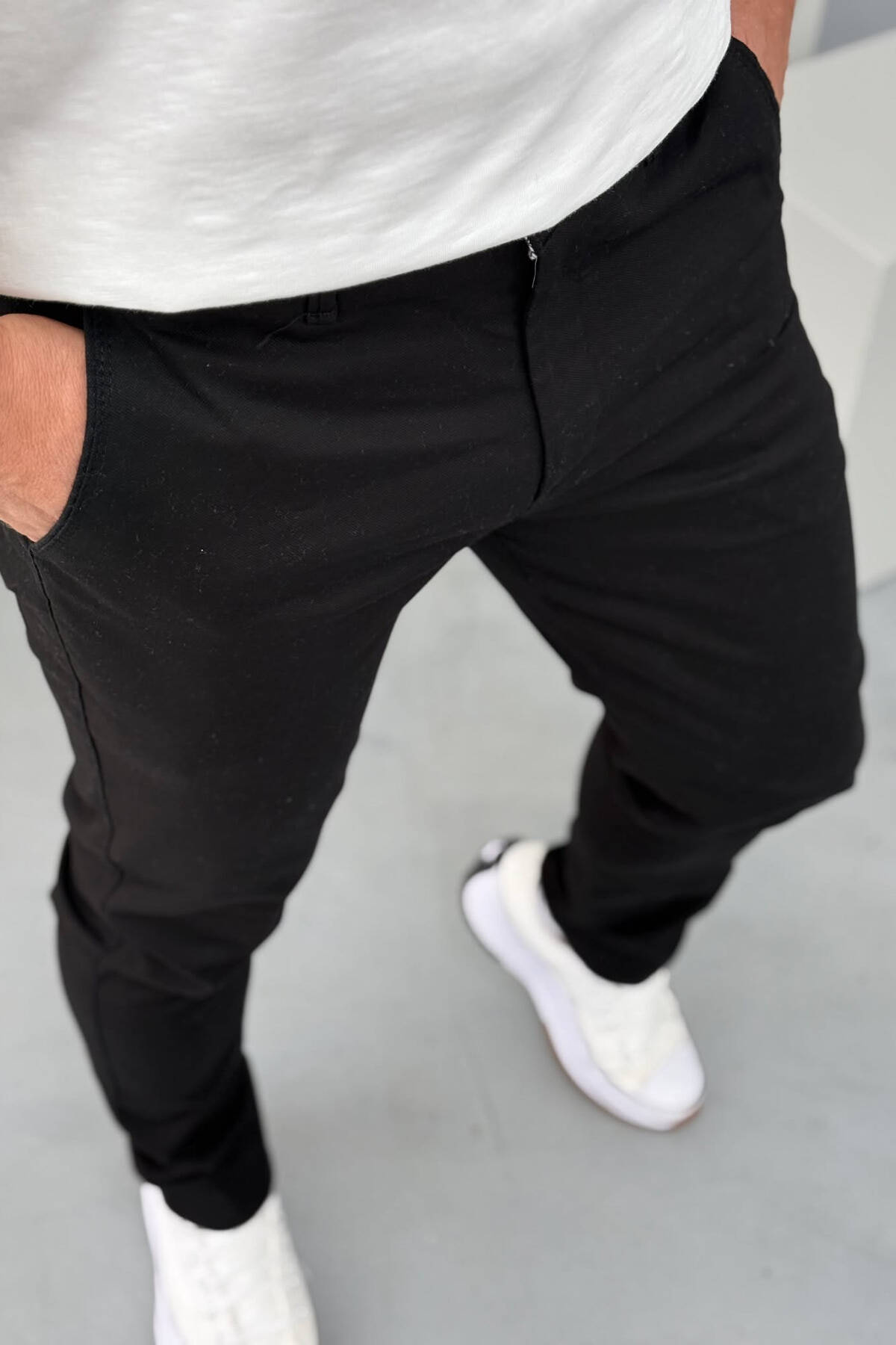 PANTALLONA NJË NGJYRËSHE TË THJESHTA PËR MESHKUJ NË NGJYRËN E ZEZË