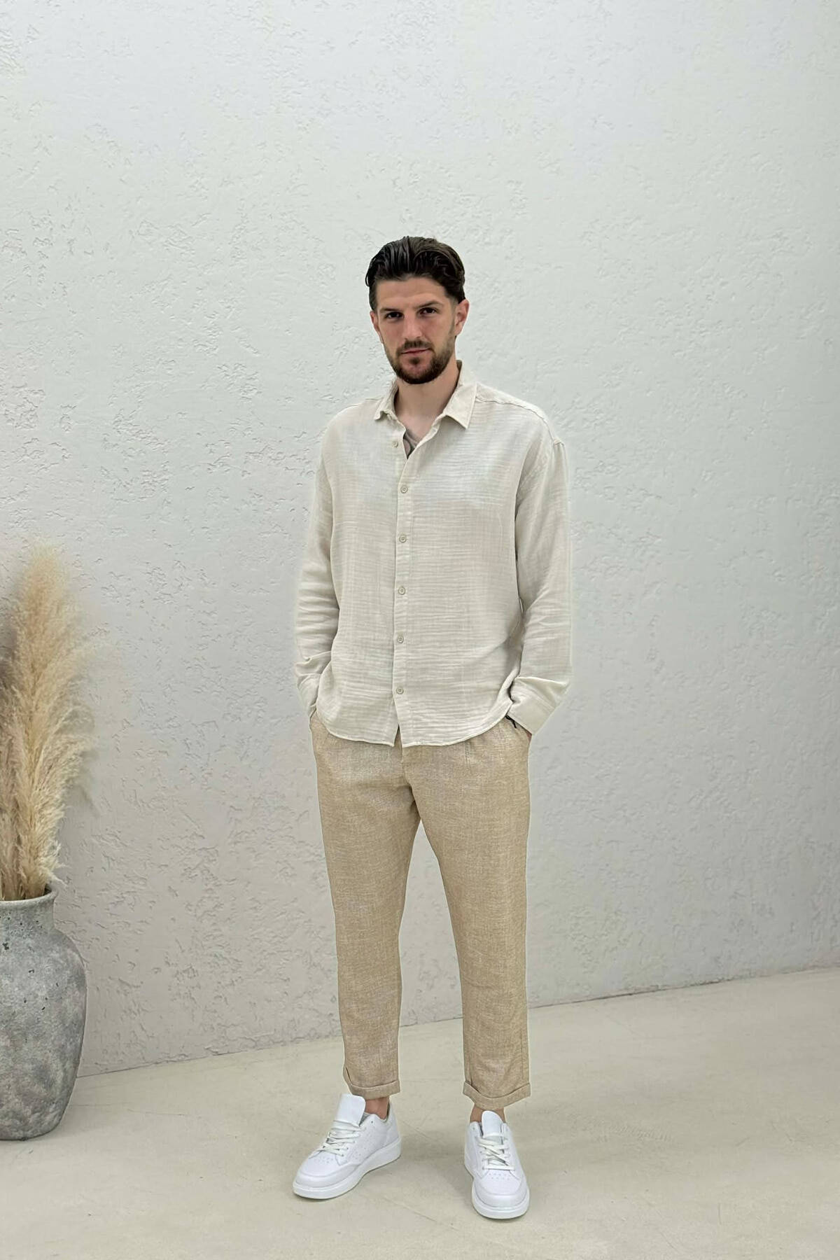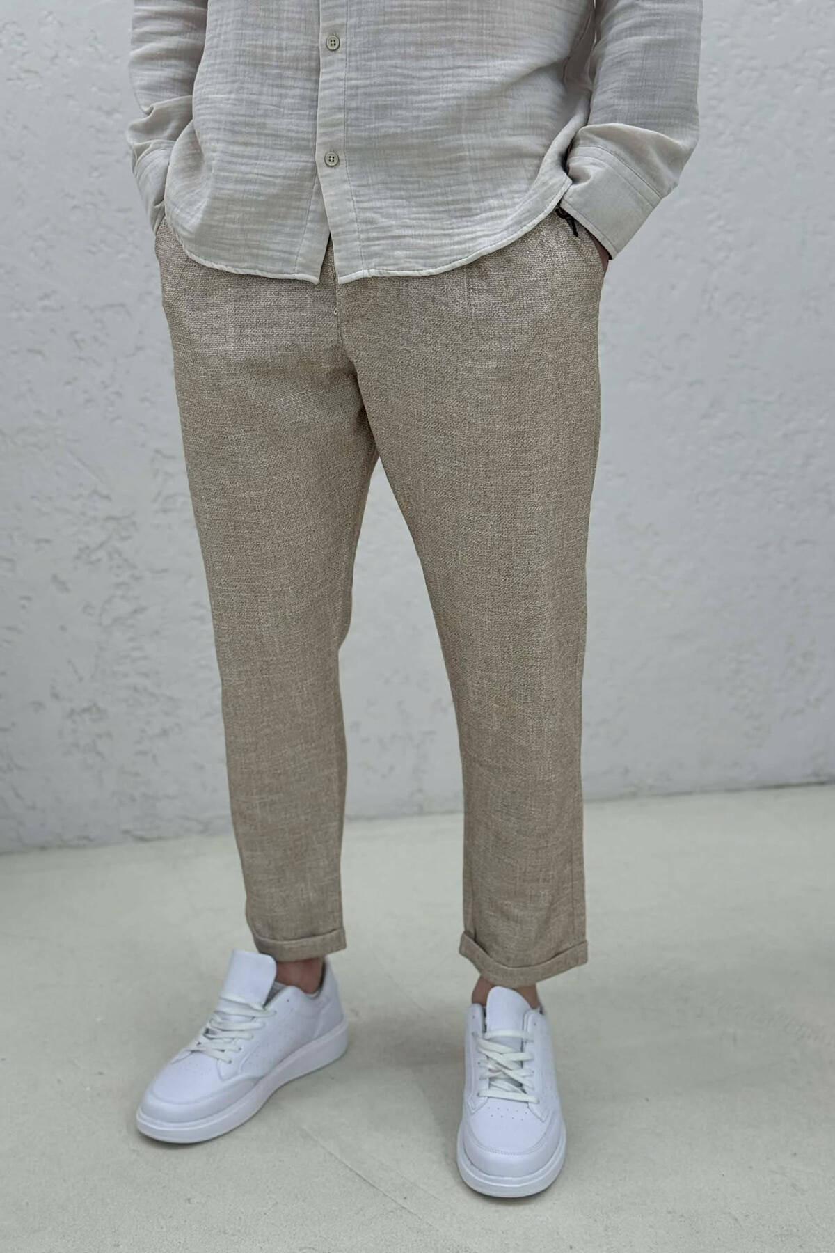 PANTALLONA LINO PER MESHKUJ NE NGJYRE BEZHE