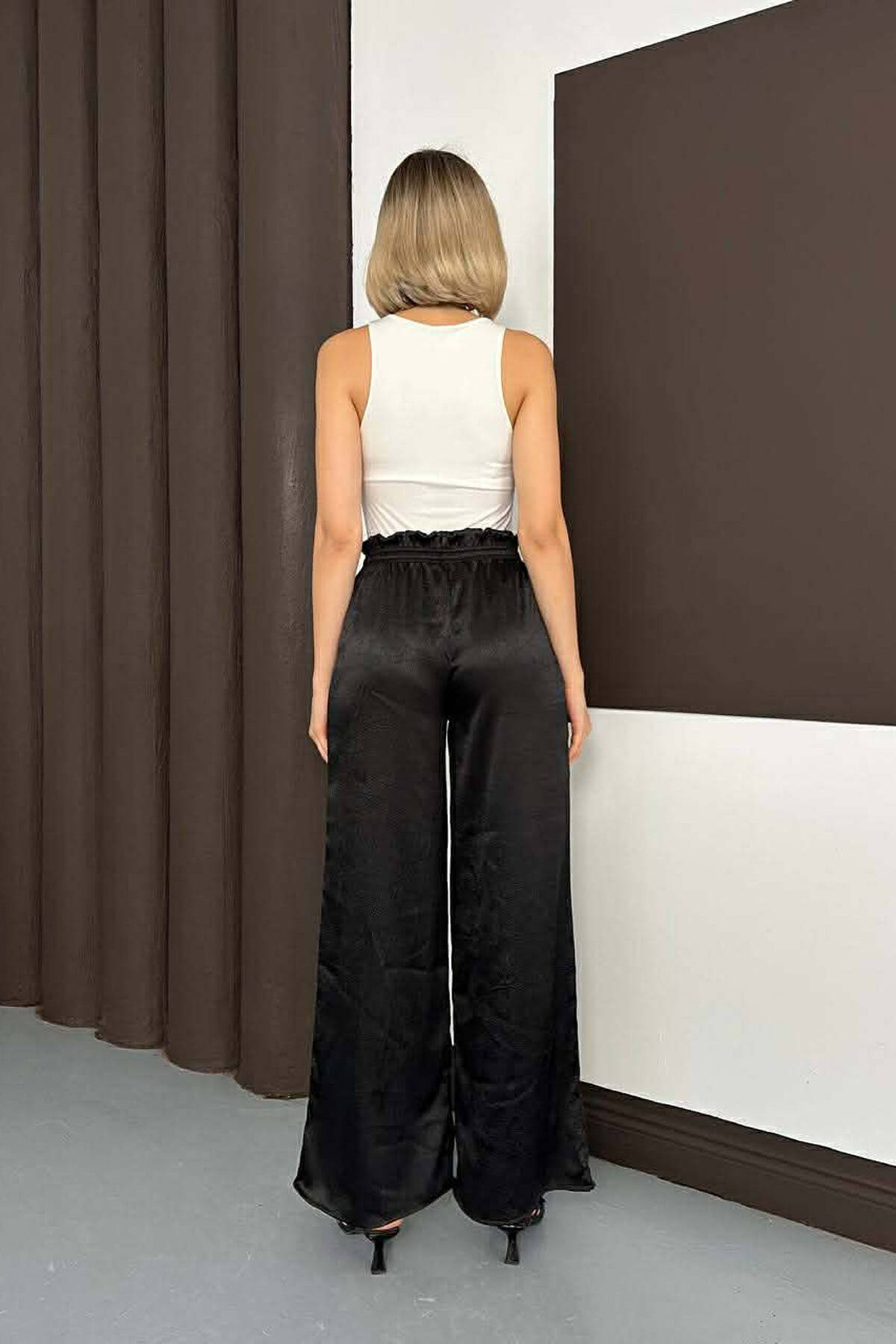 PANTALLONA TE GJERA NJE NGJYRESHE ME DETAJIN E RRIPIT PER FEMRA NE NGJYRE TE ZEZE