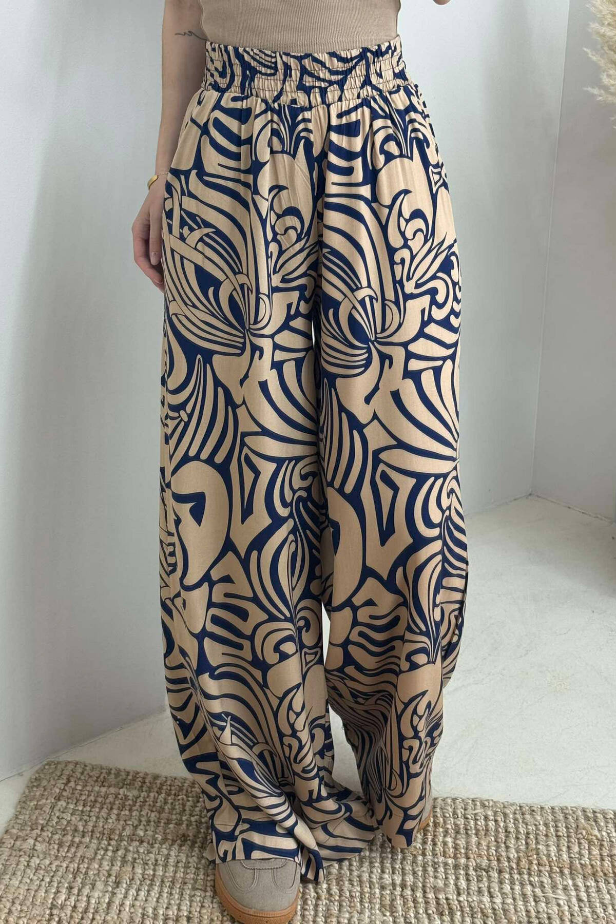 PANTALLONA TË GJERA ME DIZAJNE TË NDRYSHME PËR FEMRA NË NGJYRËN BEZHË